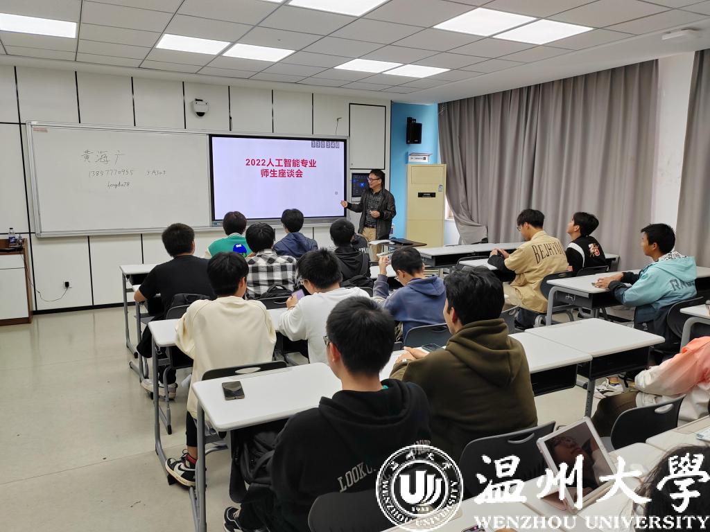 座谈会上,22级学生代表踊跃发言,包括询问如何打好高数基础,以及交流人工智能专业的前景等。人工智能系主任黄海广老师分享了自己的学习经验。同时从升学和工作的角度分析本专业的前景,强调学好数学、英语和编程基础课的必要性,并表示大家认真学习的同时也要平衡好学习与校园生活的关系。与会老师认真听取,并分享了自己对同学们反馈问题的看法和建议。
