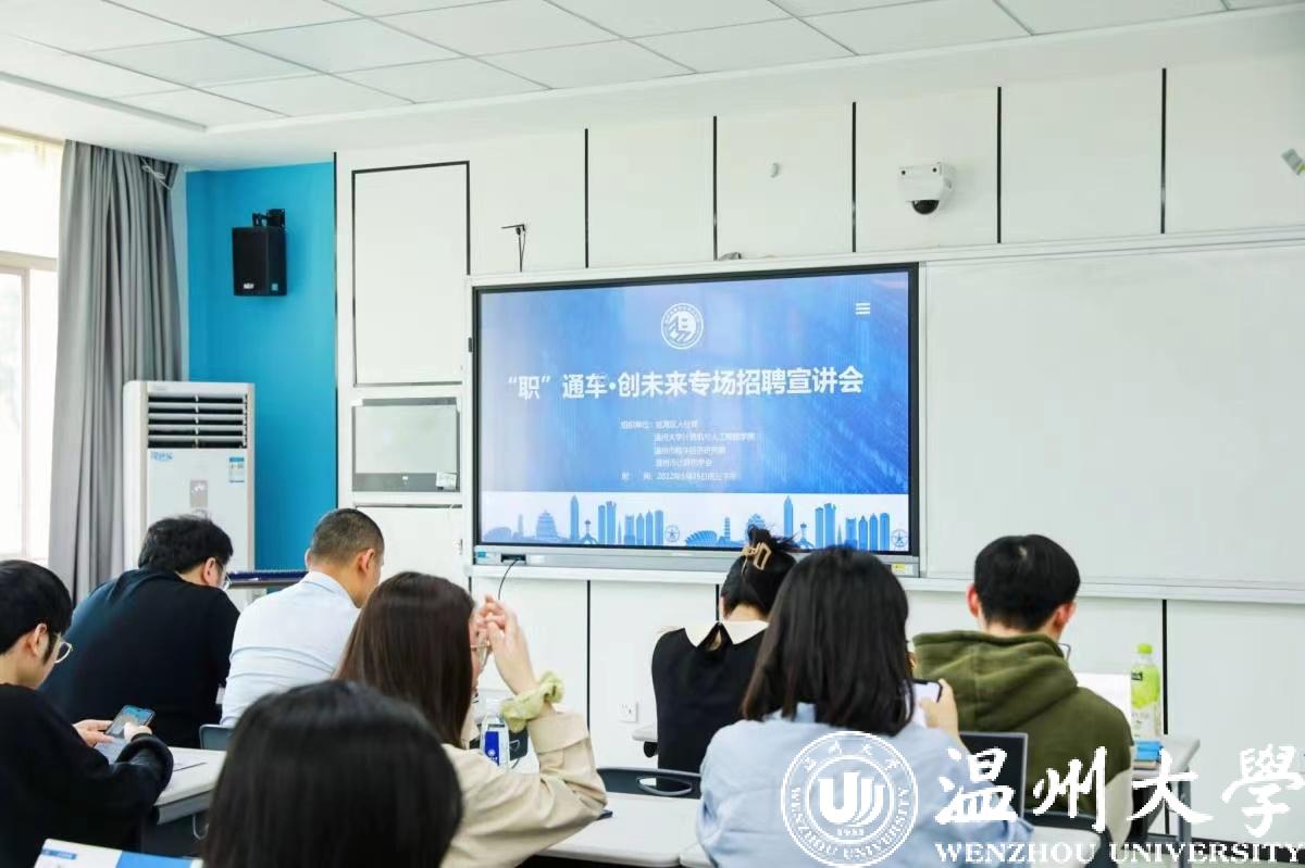 毕业在即,就职在瓯。2022年5月25日下午,由瓯海区人力资源和社会保障局、瓜子tv 、温州市数字经济研究院和温州市计算机学会共同主办的“职”通车·创未来招聘宣讲会在瓜子tv 5A-101、103教室顺利召开。拉近温州本土数字经济类企业与在校学生之间的距离,增强企业师生交流,促进校企合作。