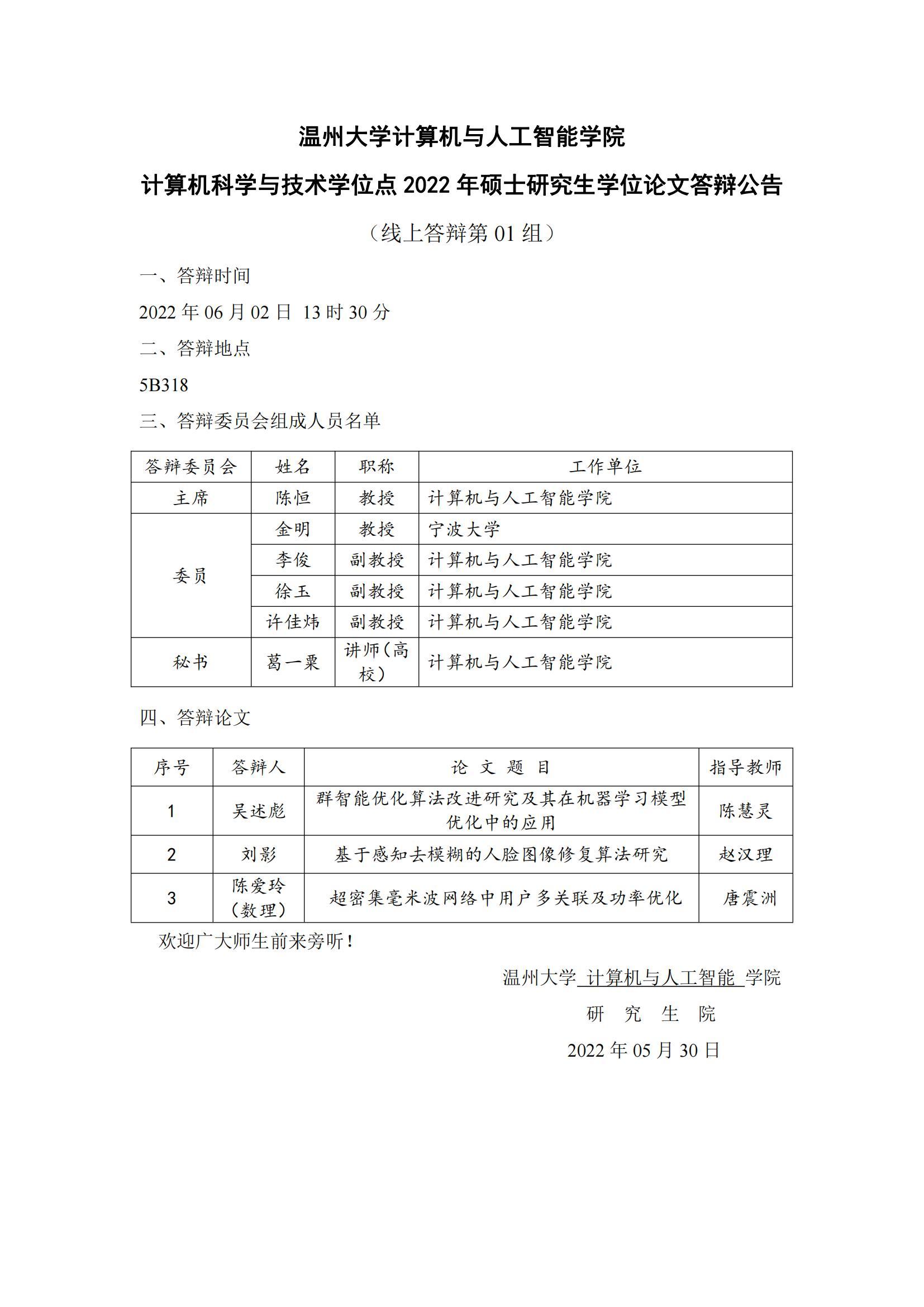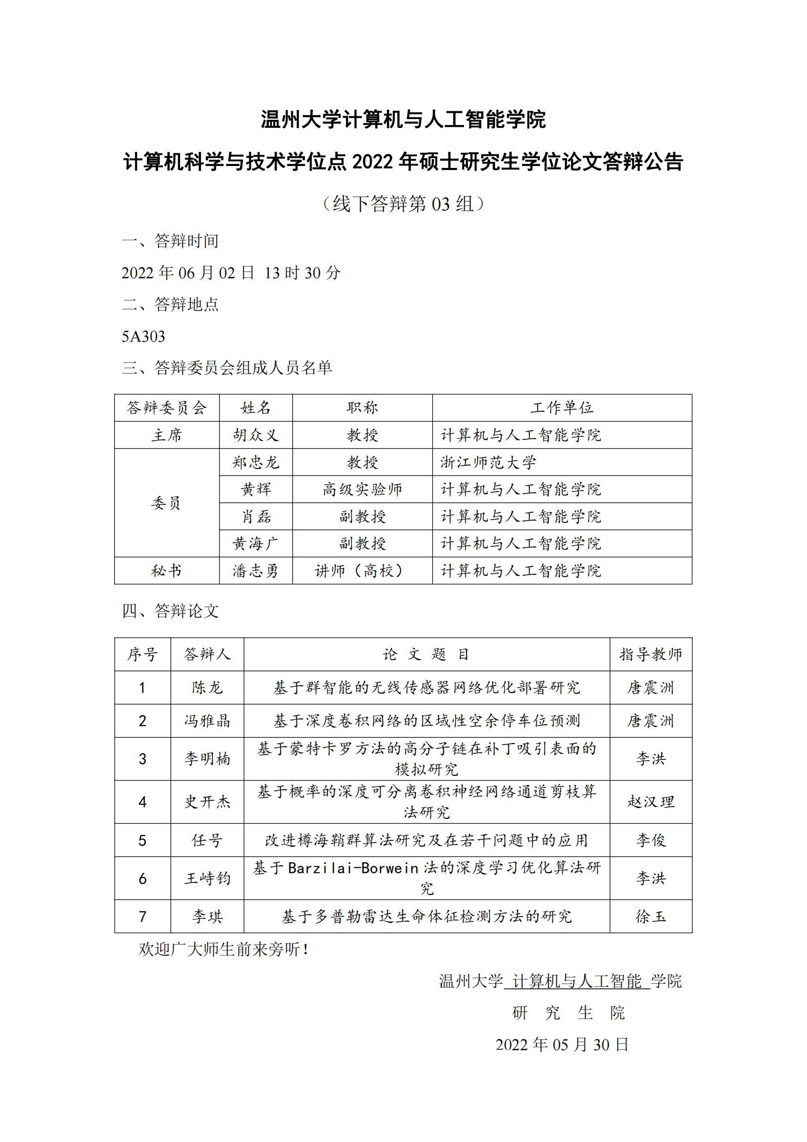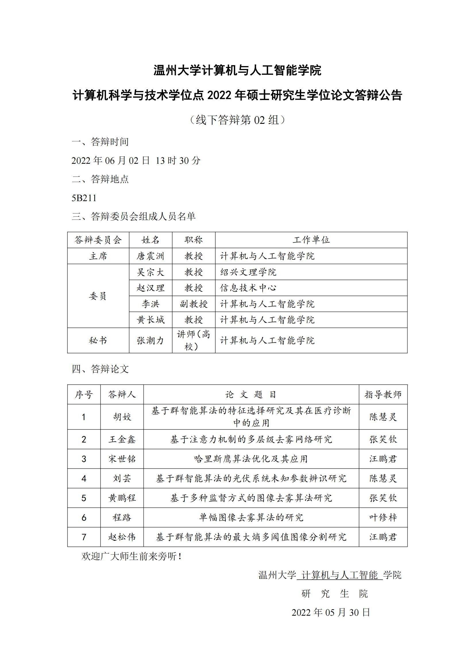 瓜子tv 计算机科学与技术学位点2022年硕士研究生学位论文答辩公告