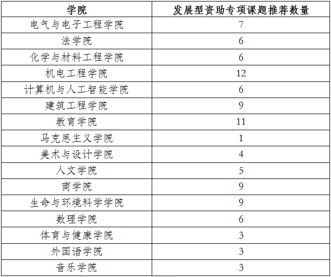 发展型资助专项课题采用瓜子tv 推荐制,瓜子tv 报送即可立项,2024年3月结题验收。各瓜子tv 推荐件数如下表所示: