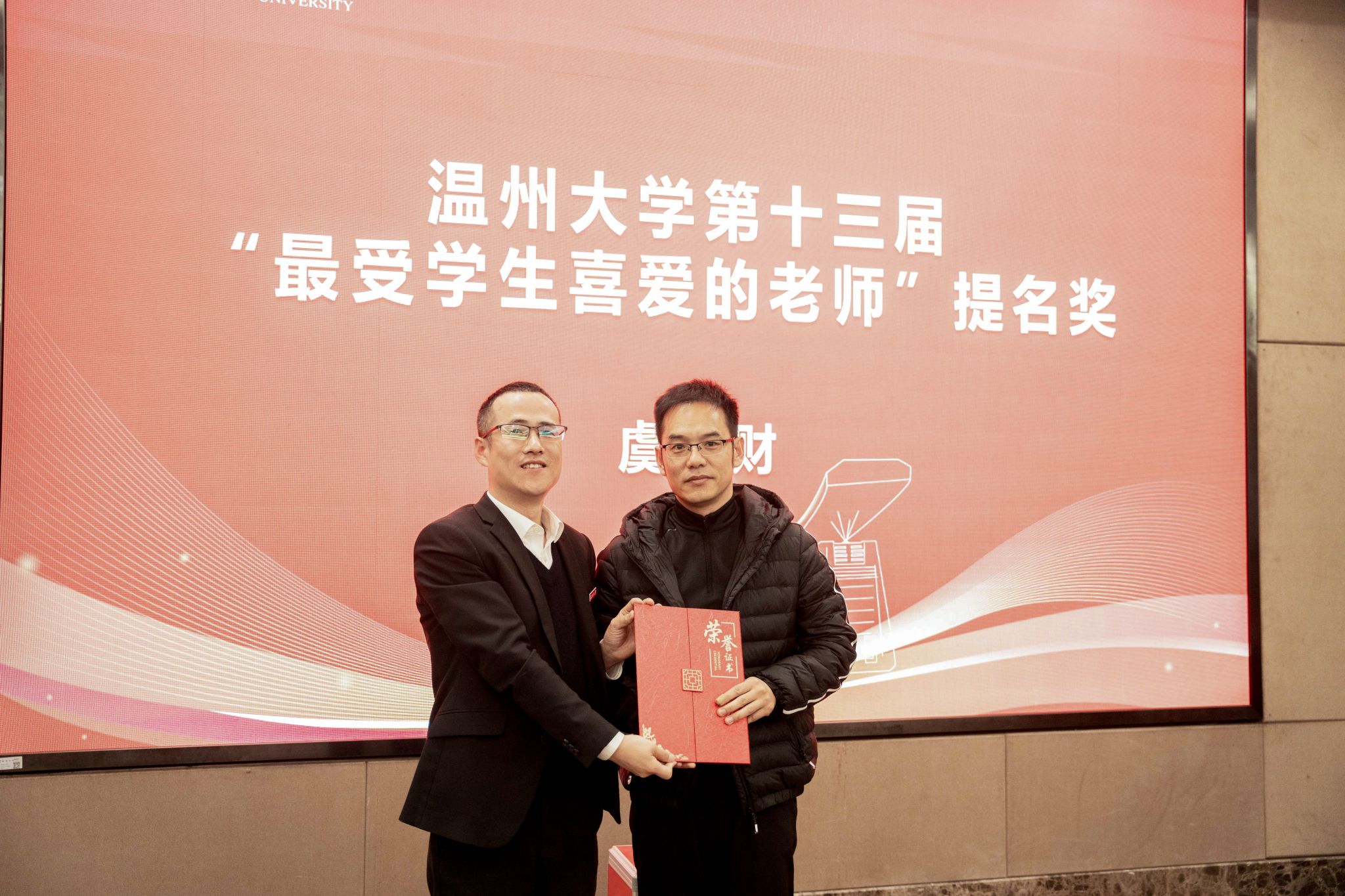 最后,陈慧灵副院长向虞铭财教师颁发瓜子tv 第十三届“最受学生喜爱的老师”提名奖荣誉证书。全力书记、陈慧灵副院长、黄辉副院长向陈伟斌、金可仲、李忠月和虞铭财四位教师颁发瓜子tv “最受学生喜爱的老师”荣誉证书。