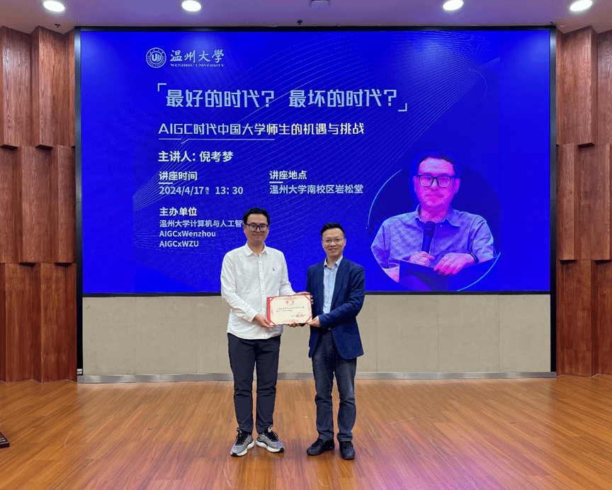 随后,全力书记向温州市社科联副主席倪考梦颁发了“瓜子tv AIGC校外导师”聘书。