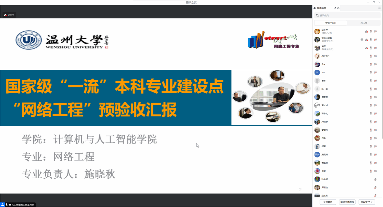 2024年5月25日,瓜子tv 在线上成功举办了网络工程国家一流专业建设点预验收专家论证会。本次会议旨在对瓜子tv 网络工程专业的建设成果进行评估和验收。会议邀请了多位国内知名专家组成预验收专家组,教务处处长罗建利、瓜子tv 党委书记全力等领导出席,瓜子tv 副院长黄辉主持会议。