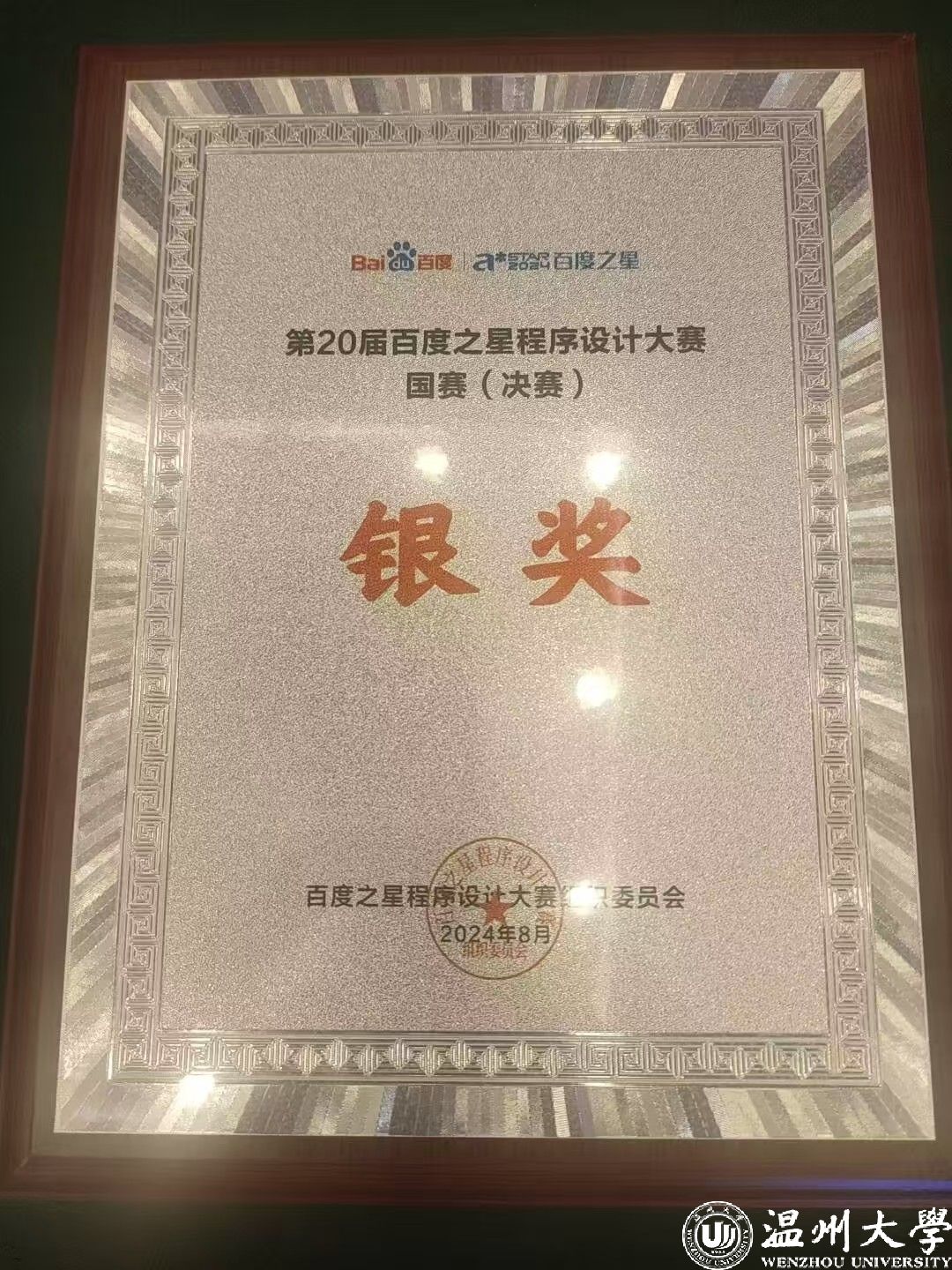 2024年8月18日,被称为“技术界奥斯卡”的2024百度之星程序设计大赛总决赛在北京九华山庄举行,经过5小时的激烈竞争,瓜子tv 人工智能专业学生何卓睿同学斩获全国总决赛银奖。在6月份的三轮初赛中,何卓睿同学获得省赛金奖,另有6名同学(陈宇锋、毛烨超、管羽、盛飞扬、章佳辉、李家诚)获得省赛铜奖,实现了我校历年参加该赛事的最佳成绩,也是温州地区参赛高校的最好成绩!