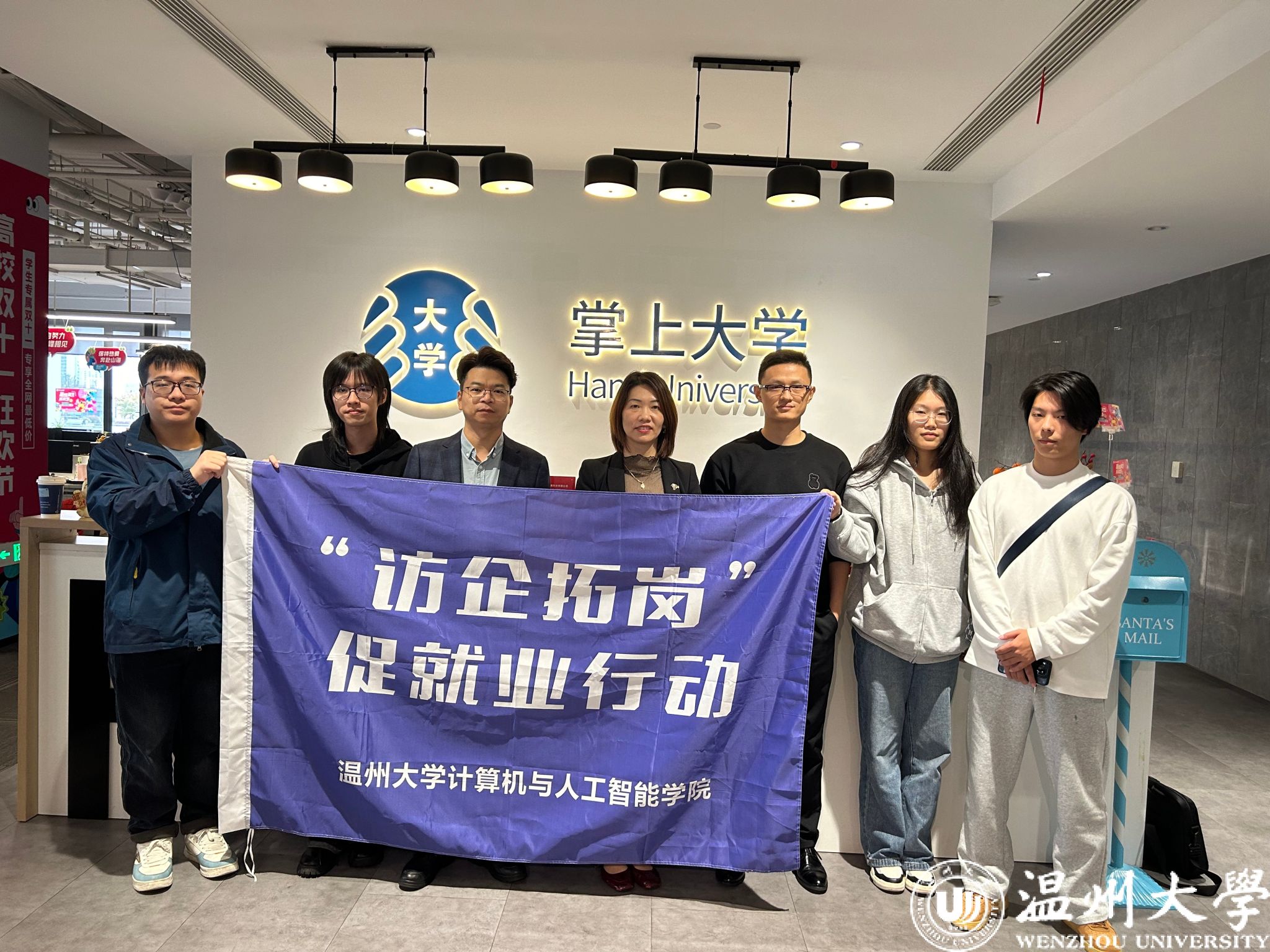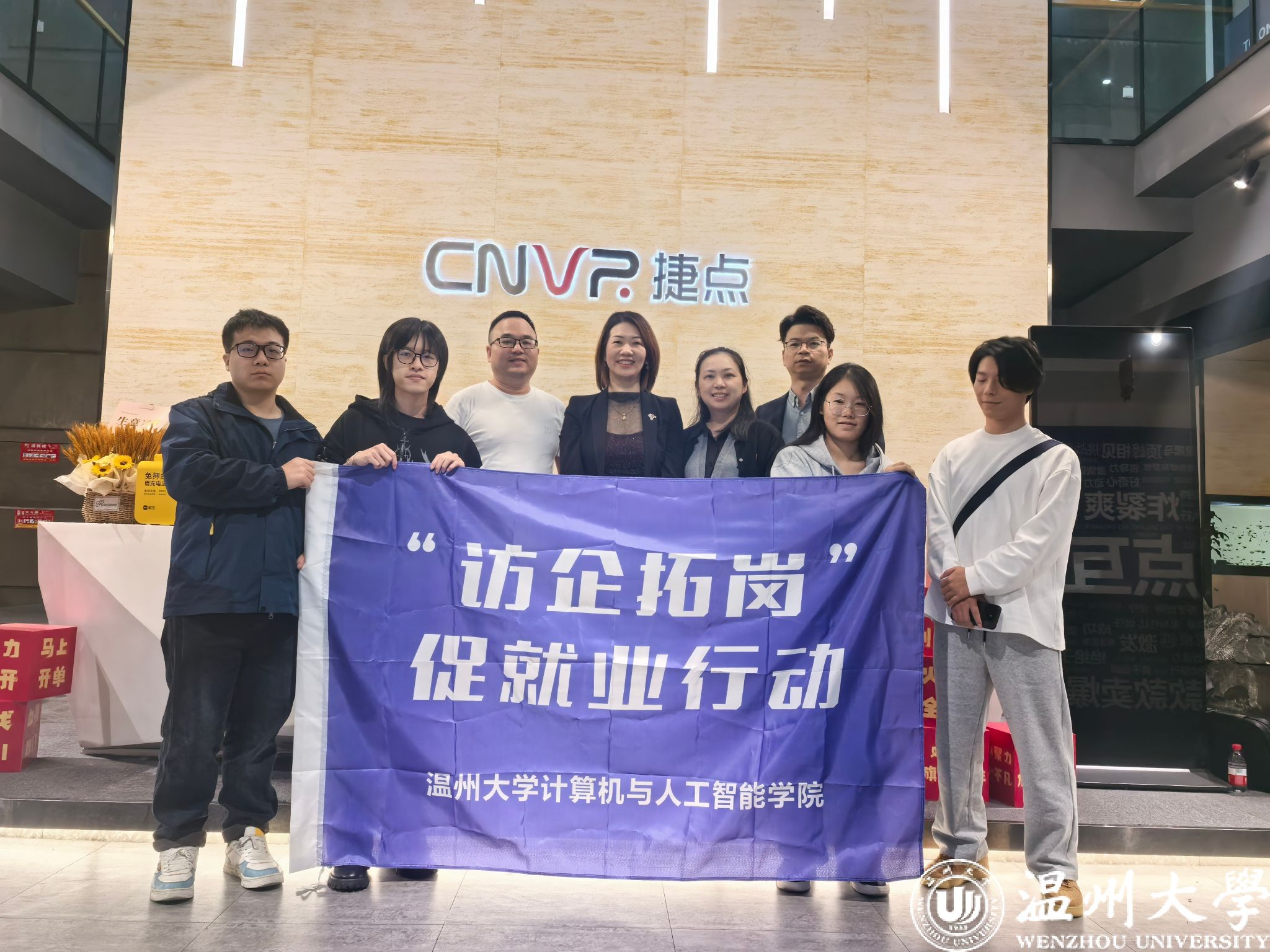 11月17日,瓜子tv 计算机瓜子tv 为积极贯彻教育部及学校“访企拓岗”专项行动要求,推动产教融合、科教融汇,进一步拓宽毕业生就业渠道,由瓜子tv 党委副书记彭小媚带队,计算机系主任陈伟斌、学工办主任叶洁琼及学生代表等一行前往杭州走访调研了校友企业——掌上大学和杭州捷点网络科技有限公司。此次走访旨在深入了解企业需求,挖掘校企合作潜力,为毕业生搭建更广阔的就业平台。