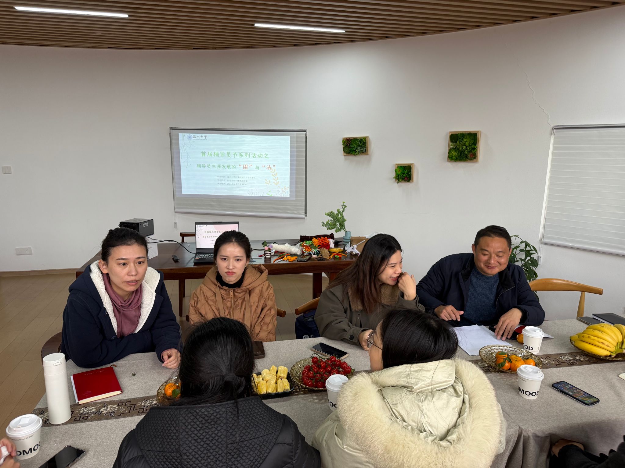 活动伊始,彭书记为大家分享了前往杭州高校调研的诸多宝贵感受,并分享了自身在大学生创新创业领域的深厚积累,为大家讲述了助力学生创业项目从萌芽到成长的艰辛历程,如何精准挖掘有潜力的点子,怎样协调资源为学生搭建实践平台,现场辅导员觉得受益匪浅。彭书记指出,各位辅导员务必尽快熟悉繁杂的学生事务,同时,大家还要目光长远,依据自身专长与兴趣,锚定专属的发展路径,潜心专研,深耕心理健康疏导、聚焦职业规划指引,或是成为学术竞赛培优的行家,如此才能为学生成长成才铺就坚实道路。随后,各瓜子tv 辅导员分别结合自身的工作经历和感悟进行分享,共同探索在工作过程中的“困”与“法”,找寻育人成长的最佳路径。