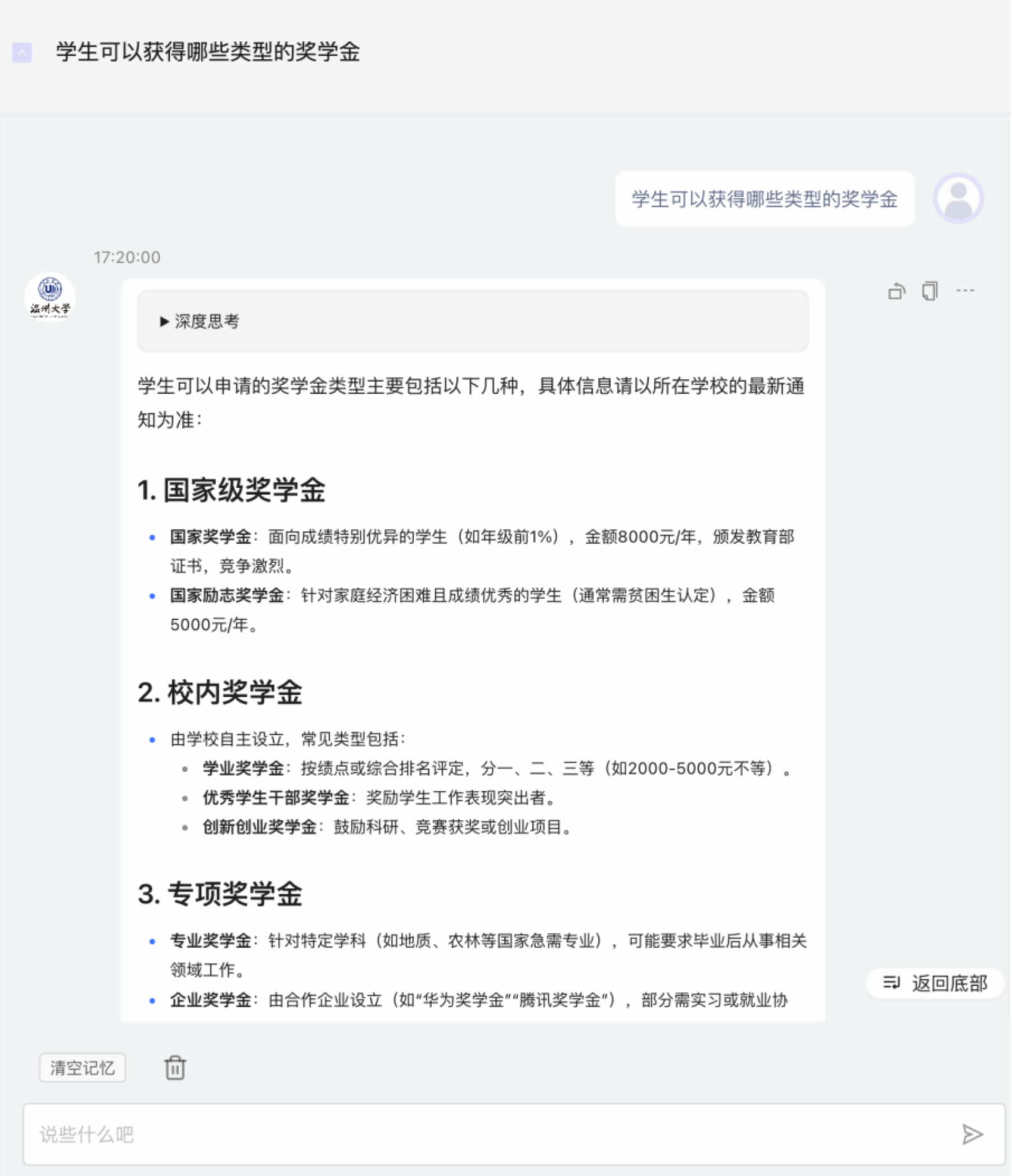 基于DeepSeek R1大模型的“瓜子tv 师生助手”,由瓜子tv 刘军副教授、顾旭波团队与学校信息技术中心相互协作部署,该系统基于瓜子tv 学生工作知识库,具备强大的自然语言处理能力和多场景应用功能,全校师生无需登录即可使用。该模型擅长处理文本理解、信息检索、智能问答等多种任务,并能根据用户的个性化需求提供定制化的服务。例如,师生可以通过该助手快速查询课程安排、学术资源、校园公告等信息,还能获得学习建议、瓜子tv 辅助等智能化支持。