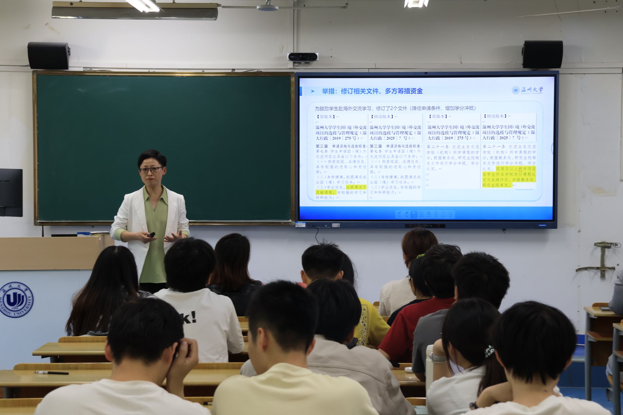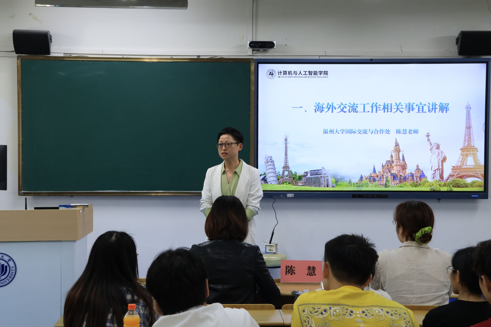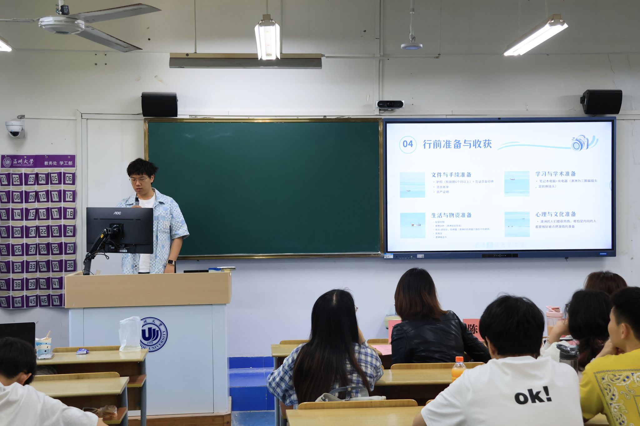 为帮助瓜子tv 学生了解国外学习生活情况和我校寒暑假出国研学的项目和资助政策,拓宽国际视野,做好留学规划,2025年4月10日13:30,瓜子tv 特邀请瓜子tv 国际交流与合作处(港澳台侨办公室)陈慧处长、瓜子tv 辅导员刘畅老师于5A102开展以“AI创世界·研学启新程”为主题的国际研学项目分享会。本次活动由瓜子tv 党委副书记、纪委书记彭小媚主持。