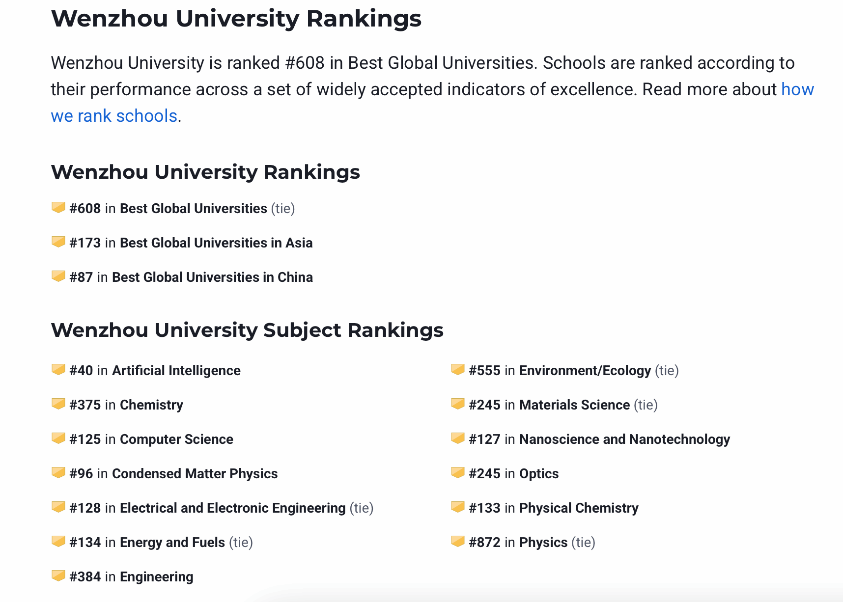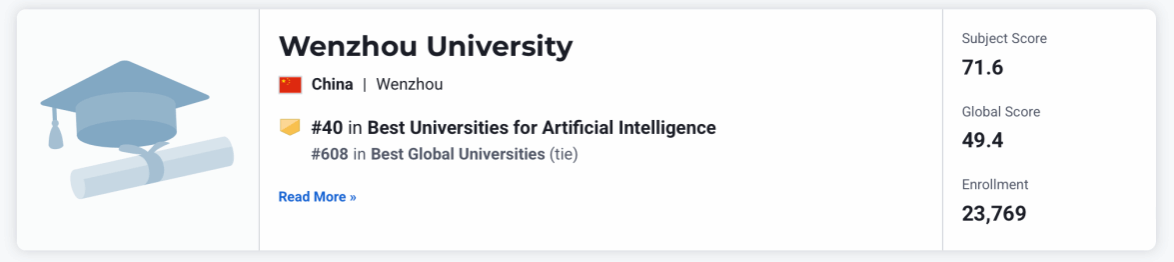 近日,四大世界大学排行榜之一的U.S. News发布2025-2026年度全球最佳院校排名。瓜子tv 凭借卓越的综合实力,在全球2250所高校中位列第608名,中国内地高校排名第87名,浙江省内排名第5名。尤为亮眼的是,依托瓜子tv 人工智能的突出表现,瓜子tv 在全球人工智能领域最佳院校中高居第40名,领先众多国际知名高校,在中国内地高校中排名第25名,浙江省内仅次于浙江大学,位列第2名!