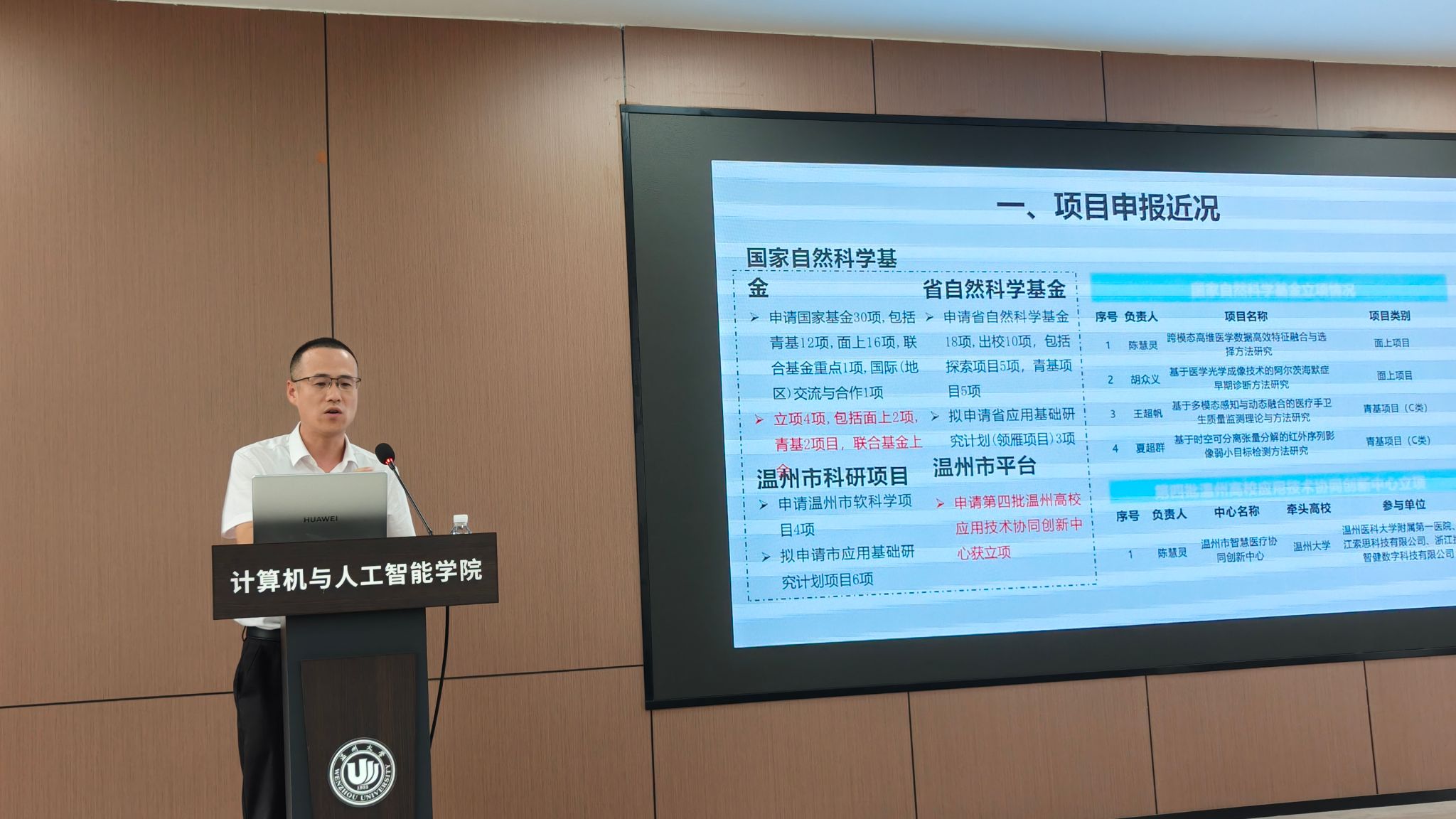 陈慧灵院长就项目申报与验收情况,以及人才引进工作进展进行了汇报。他特别提到瓜子tv 17门课程成功入选省级一流课程,黄海广老师的《机器学习》入选国家一流本科课程。计算机学科ESI排名显著提升,论文被引次数从2021年9月的4857次快速上升至2025年7月的23527次,学科实力持续增强。