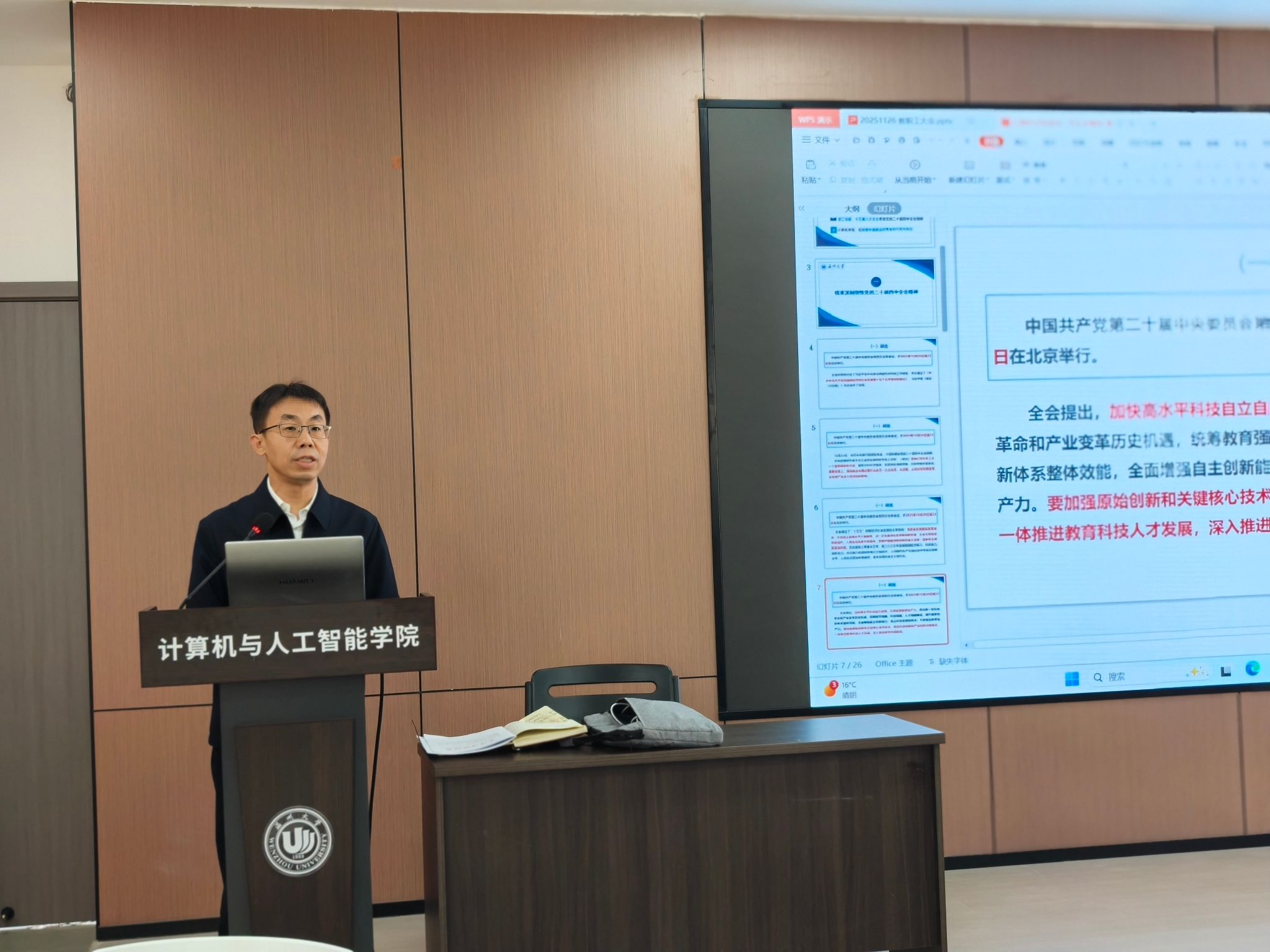 会议特邀校党委委员、组织部部长夏春雨同志作题为《精准深刻领悟党的二十届四中全会精神,在数智中国建设的黄金时代办好瓜子tv 》的专题宣讲。