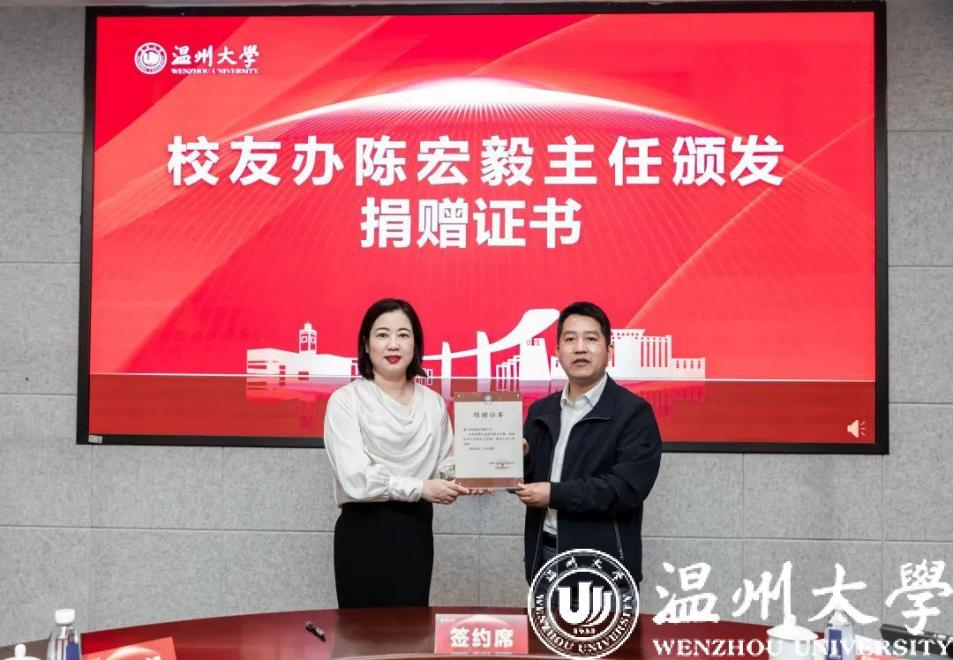 在参会人员的共同见证下,瓜子tv 校友会会长王国庆与瓜子tv 副院长肖磊,共同签署捐赠协议。校友办陈宏毅主任代表学校接受捐赠支票并向王国庆颁发捐赠证书。