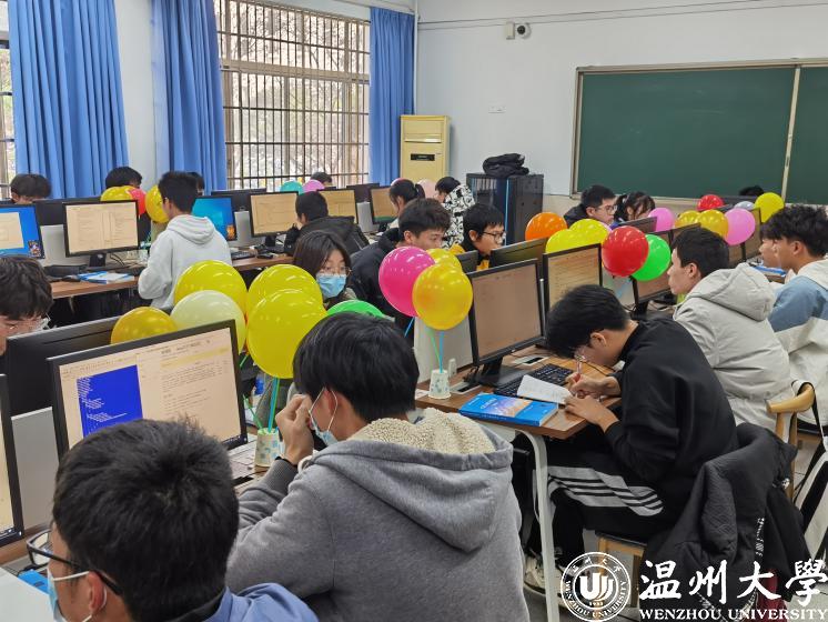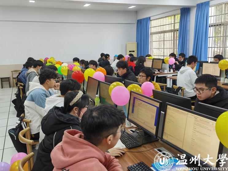 第二个进程为选手比赛,22日下午比赛正式开始。有的同学头脑风暴快速解决问题,有的同学认真细致奋笔疾书力求提高正确率。不久,代表胜利的气球插上了他们的桌角,答对的题数越多气球就越多。新生赛题目是由ACM集训队的命题老师和队员精心设计,涉及字符串处理、排序、游戏模拟、几何计算方方面面,难度梯级分布,展现了参赛者的编程水平和问题解决能力。同学们一路披荆斩“题”,激情不只为那一个个鲜红的AC,更展现了温大学子不怕难不服输的精神。