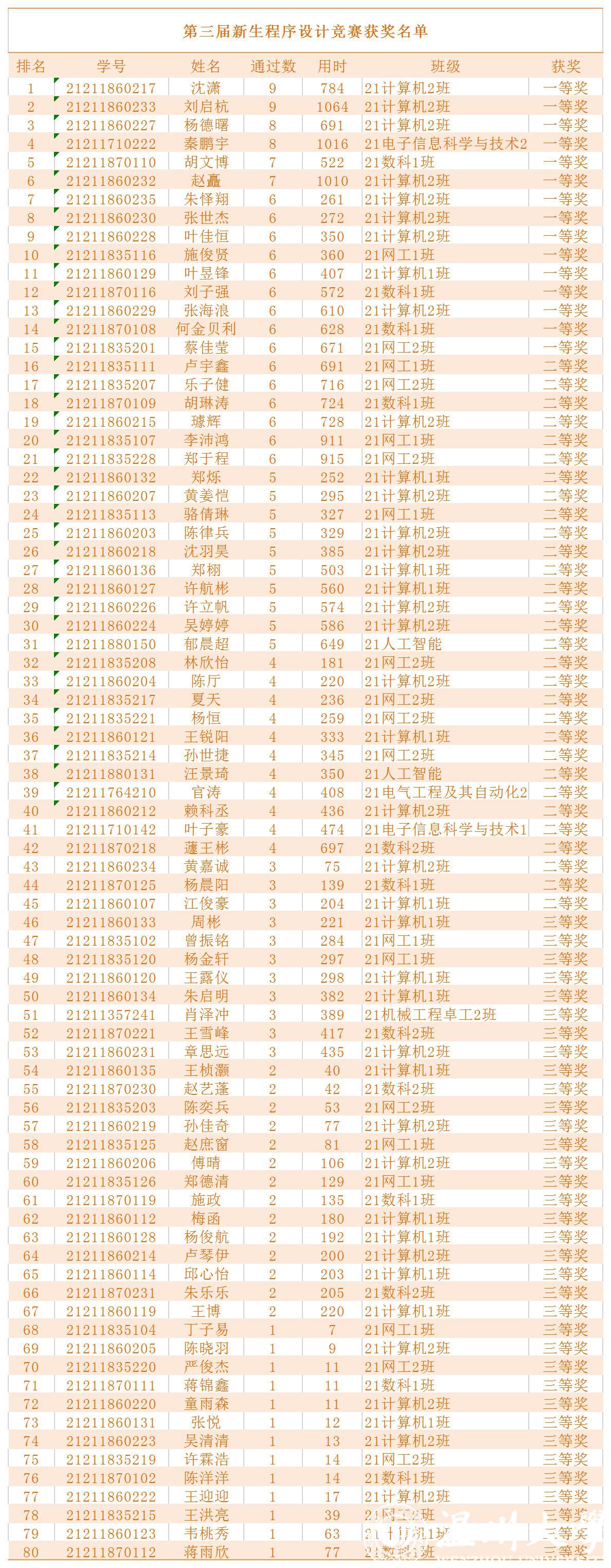 为了增强新生的竞赛意识和创新能力,进一步培养和激发同学们对计算机编程的兴趣,2021年12月22日下午,计算机瓜子tv 在5号楼各机房举行了第三届新生程序设计竞赛。本次竞赛由校社团计算机兴趣小组和ACM集训队承办,全校2021级学生参加。