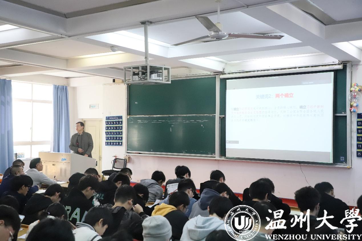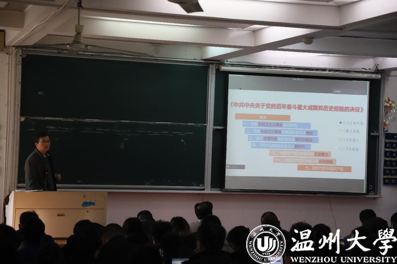 王柏民老师首先讲解了十九届六中全会的主要内容,随后展开详细讲解。王老师提炼了数个关键词,并将关键词展开细说,由浅入深,层层嵌套,加深了老师和学生们对讲座内容的理解与掌握。同时,在讲解过程中,王老师还将个人经历,个人见解与主讲内容相互结合,使得讲座更为风趣,更加通俗易懂。最后,王老师再次点题,对主讲内容进行总结,至此本次讲座圆满结束。