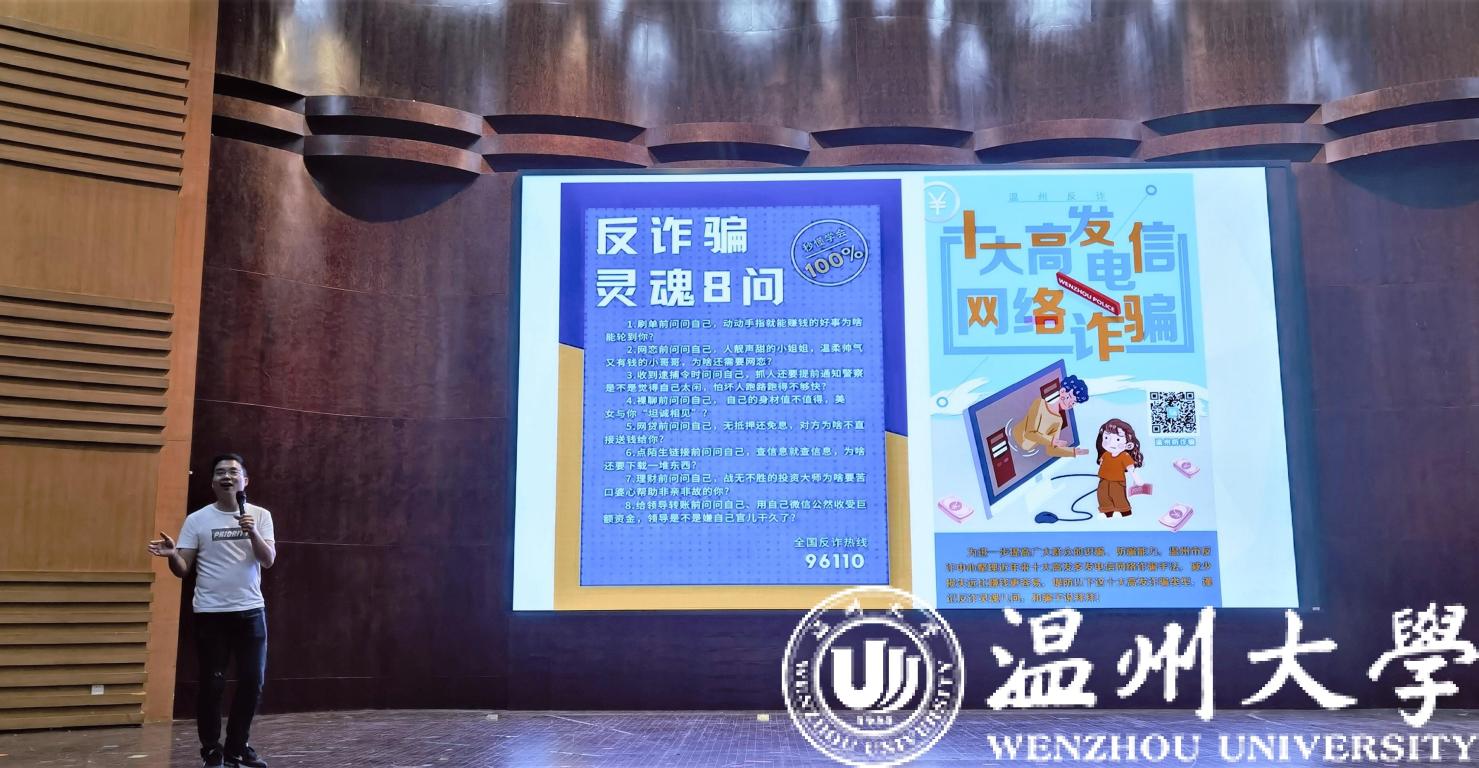 另外,叶老师通过十大高发类型诈骗和反诈骗灵魂八问,提醒同学们谨慎提防,千万注意个人财产和自身安全。最后,进入互动交流环节,仍有疑问的同学纷纷提问,叶老师予以耐心解答。至此,2021届毕业生教育大会圆满结束。