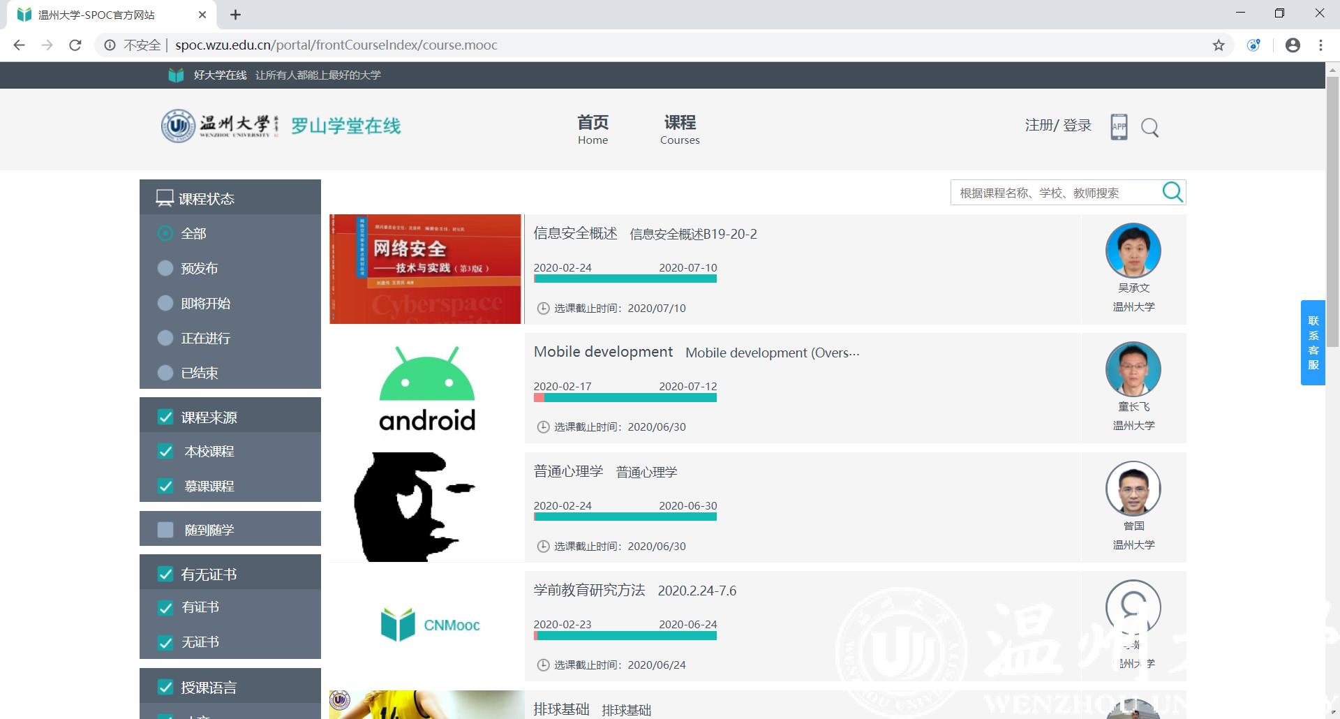 通过前期积累与本次工作的推进,本学期瓜子tv 教师在瓜子tv “罗山学堂在线”平台上新开设19门SPOC课程,占全校本学期新开课程数的近50%,为本次线上教学的高质量开展奠定了坚实的基础。瓜子tv 本学期新开设SPOC课程一览表:
