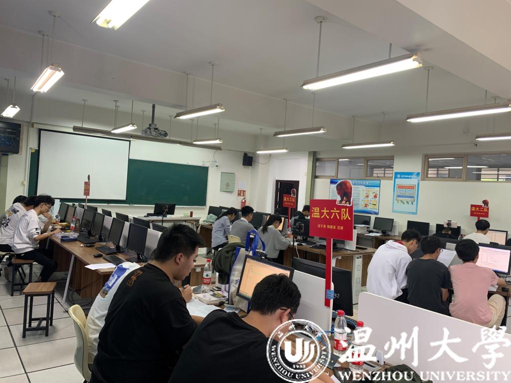 本届省赛共有264支本科队伍参加。我校有6支队伍参赛,经过5小时的鏖战,瓜子tv 胡明晓老师指导的温大二队(17计算机2班程煜,18数科1班朱林博,18计算机1班郑文尧)成功解决4题,温大一队(18数科2班杨林韬,18数科1班王世承,黄凤翔)成功解决3题,在强手如林的对手中夺得两项铜奖。