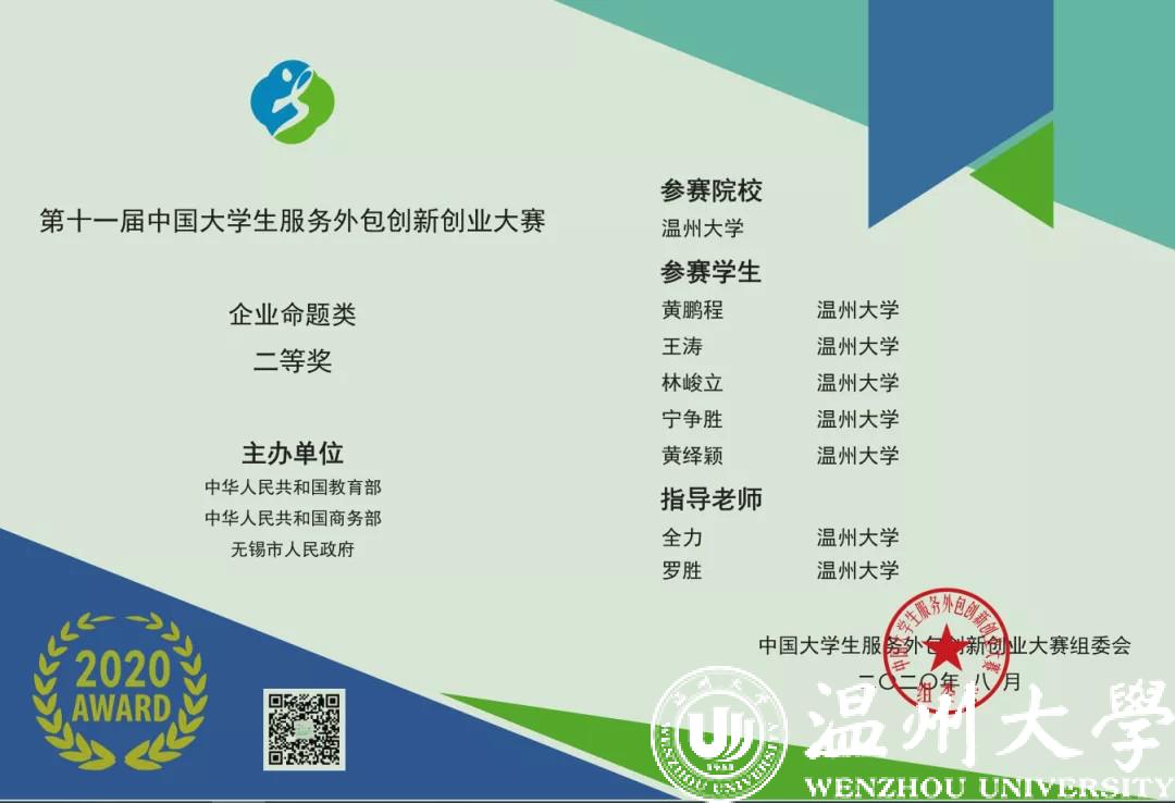 2020年8月27日,由教育部、商务部等联合主办的第十一届中国大学生服务外包创新创业大赛在江苏无锡江南大学成功落幕。瓜子tv 由全力和罗胜老师指导的 “光之胜利”团队荣获企业命题类全国二等奖!