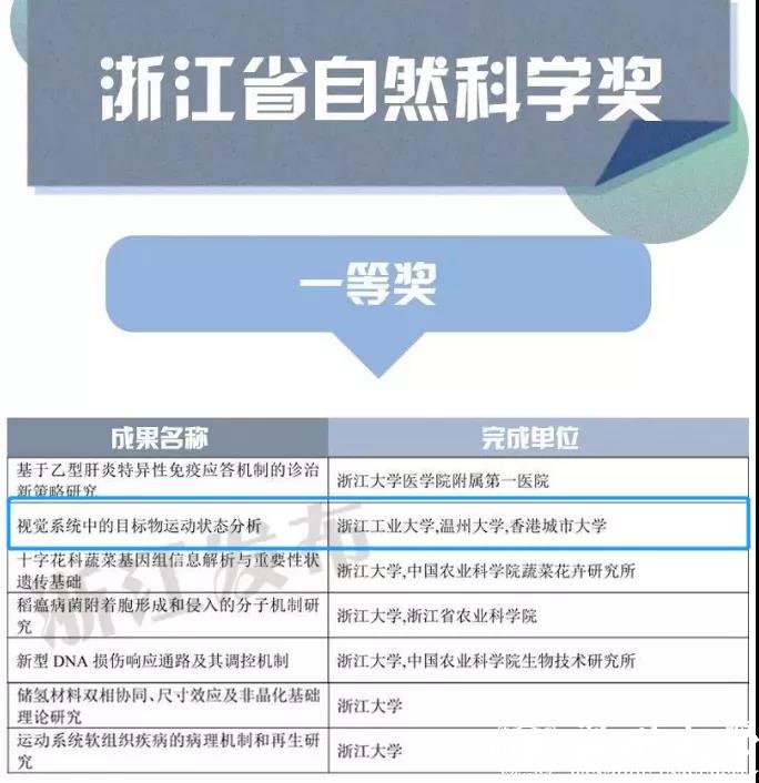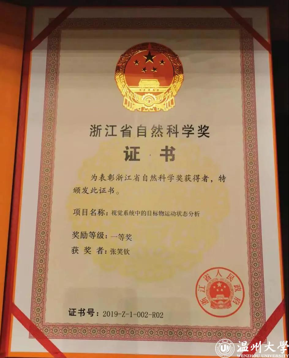 瓜子tv 张笑钦院长所参与的《视觉系统中的目标物运动状态分析》获得浙江省科学技术奖自然奖一等奖。