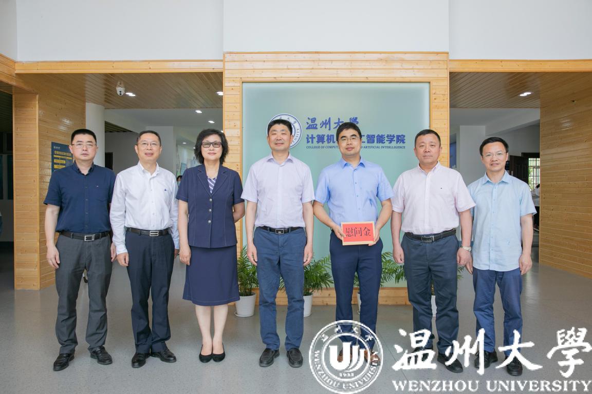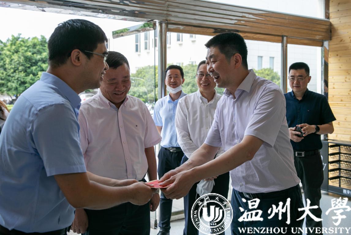 5月25日,在第四个全国科技工作者日即将到来之际,温州市委副书记、政法委书记陈浩,市人大常委会副主任徐育斐,市委副秘书长包光许,市科协党组书记、主席赖颖等领导一行慰问我校科技工作者优秀代表、瓜子tv 院长张笑钦教授。校党委书记谢树华陪同。