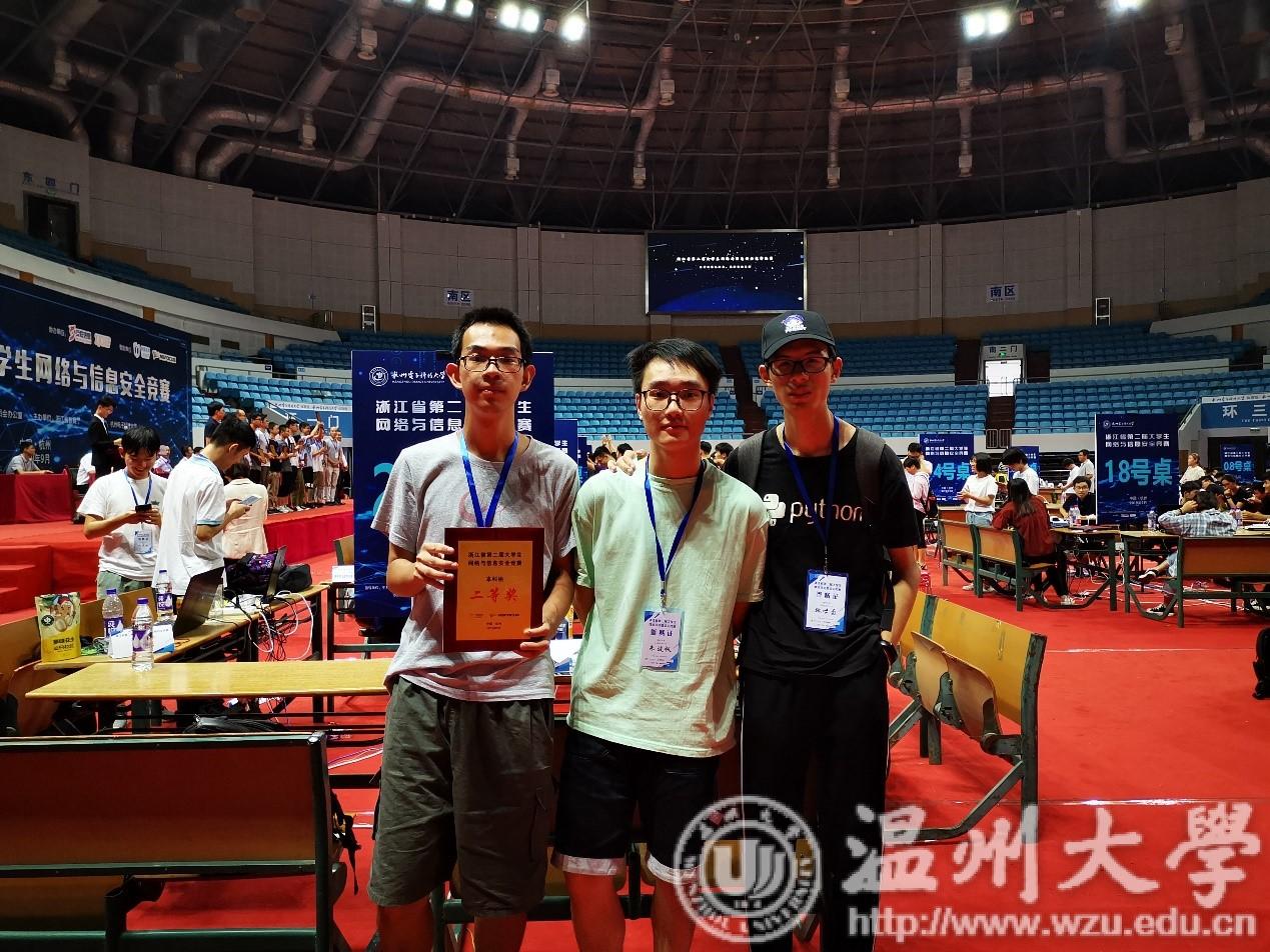 浙江省2019年大学生网络与信息安全竞赛9月21日在杭州电子科技大学体育馆落下帷幕。来自全省各高校的100支队伍300名大学生通过8小时的全封闭闯关解题比赛,决出高低。对于本次竞赛,瓜子tv 领导高度重视,最终由17网工1吴佳帅、朱波帆和18网工2魏啸磊同学组成的队伍在徐嬴颖老师的指导下,代表瓜子tv 获得二等奖。