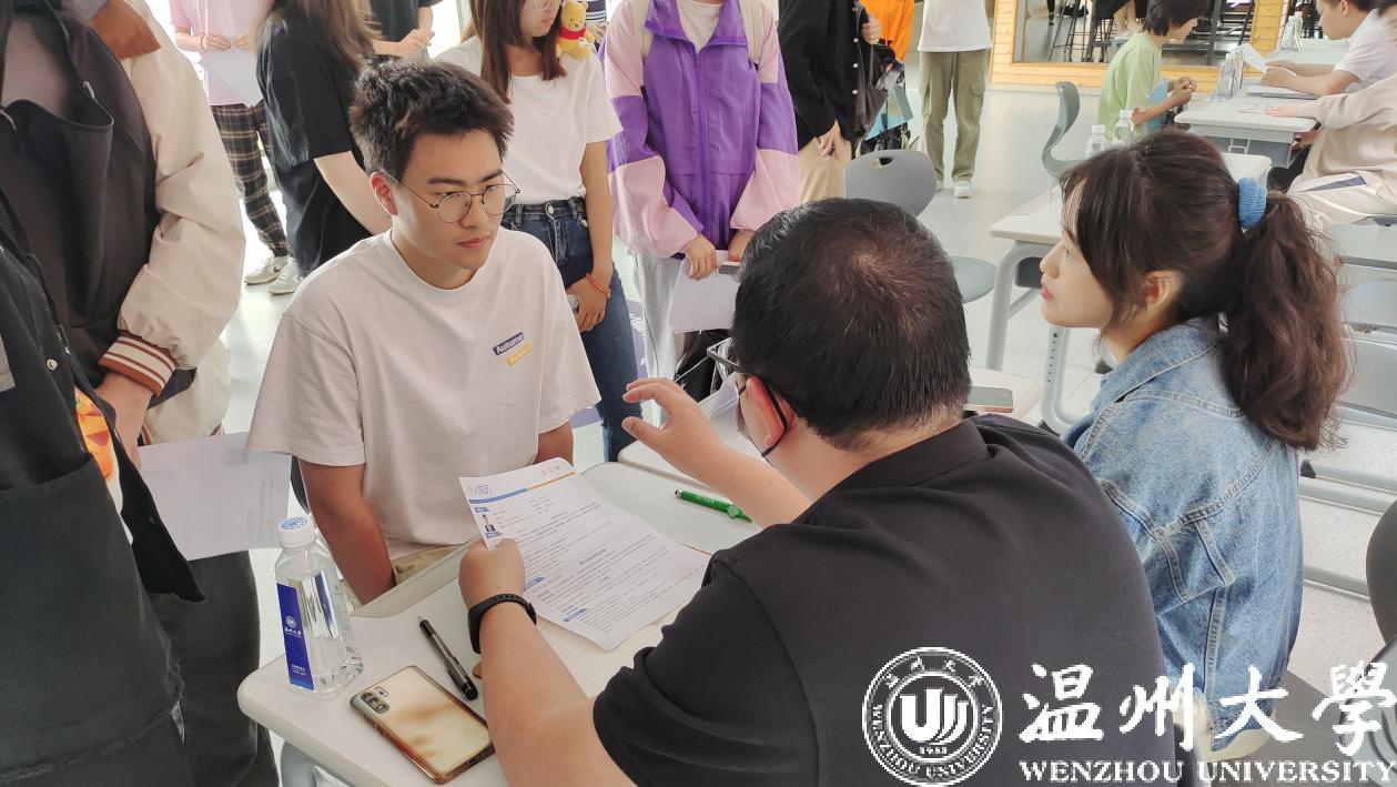 本次活动邀请了浙江索思科技有限公司、紫光云数科技有限公司 新华三集团、温州数万联信息技术有限公司、温州停简单智慧科技有限公司和温州微奇点科技有限公司共5家企业,其中4家均为温州本土优秀企业,一共带来20余个就业岗位及10余个暑期实习岗位。招聘会以PPT宣讲和面对面沟通的形式相结合。企业结合宣讲PPT为同学们详细的展示和介绍了公司的发展理念与文化、人才培养发展体系、公司未来发展前景等信息,并提供了公司招聘的具体岗位、岗位专业需求、福利待遇等。学生们提出自己疑惑或者感兴趣的问题,企业相关负责人作出了仔细又专业的解答。随后,学生在瓜子tv C座一楼连廊处设置的企业招聘点位上与企业招聘负责人面对面沟通与交流,招聘会现场反响热烈。