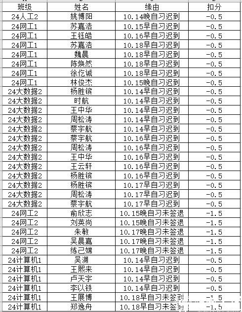为树立瓜子tv 良好学风,营造良好的学习氛围,倡导并敦促瓜子tv 同学自主学习,经学业指导部考勤,瓜子tv 学生科办公室请销假核对,瓜子tv 第七周考勤结果如下:
