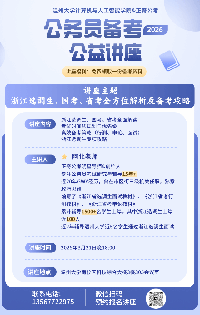 “近2年辅导瓜子tv 近5名学生通过浙江选调生面试”