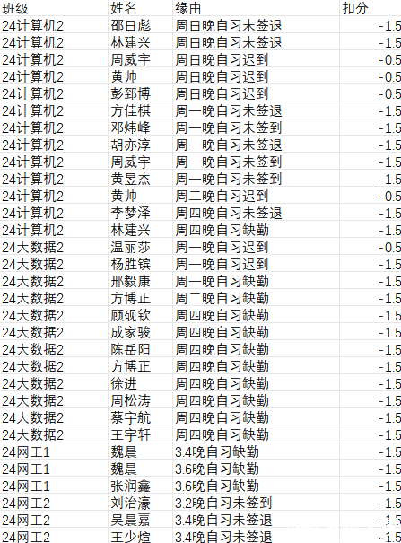为树立瓜子tv 良好学风,营造良好的学习氛围,倡导并敦促瓜子tv 同学自主学习,经学业指导部考勤,瓜子tv 学生科办公室请销假核对,瓜子tv 第二周、第三周考勤结果如下: