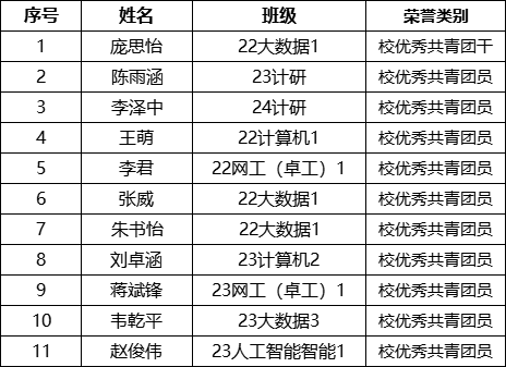 根据《关于开展2024年度瓜子tv “五四红旗团委(团支部)”评选 暨团支部风采展示大赛和“优秀共青团干部”“优秀共青团员”评选工作的通知》,经瓜子tv 各团支部推荐、院团委审核评选,拟推选以下同学为2024年度校优秀共青团干部、优秀共青团员,现将名单予以公示。(以下排名不分先后)