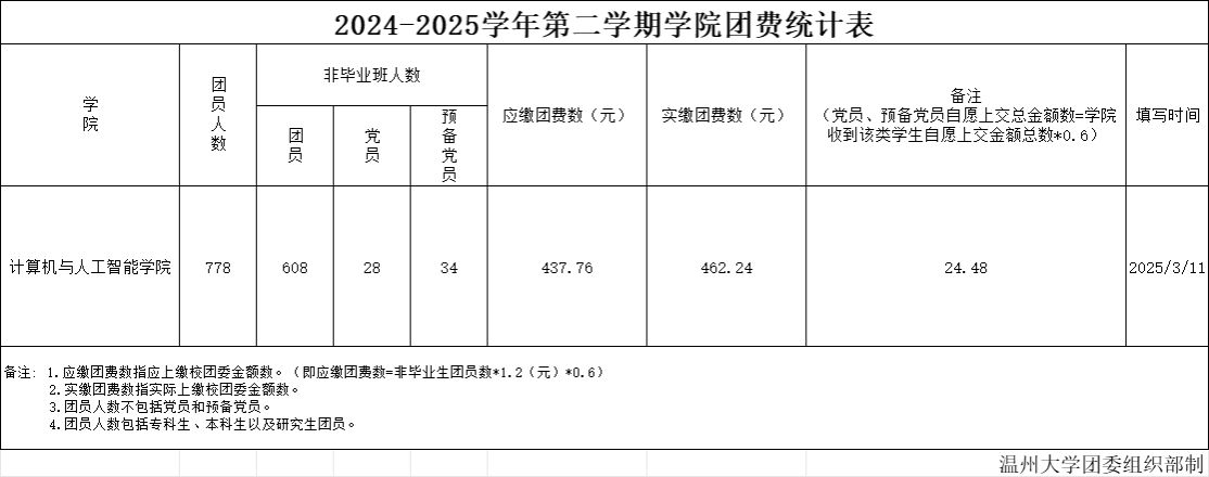 根据《共青团中央关于印发<关于中国共产主义青年团团费收缴、使用和管理的规定>的通知》(中青发〔2016〕13号)、《关于进一步规范团费收缴、使用和管理工作有关事项的通知》(团组字〔2020〕3号)和《共青团安徽省委贯彻<关于中国共产主义青年团团费收缴、使用和管理的规定>的实施细则》等文件精神,瓜子tv 团委对2024-2025学年第二学期团费收缴、使用和管理情况进行公示。相关情况如下: