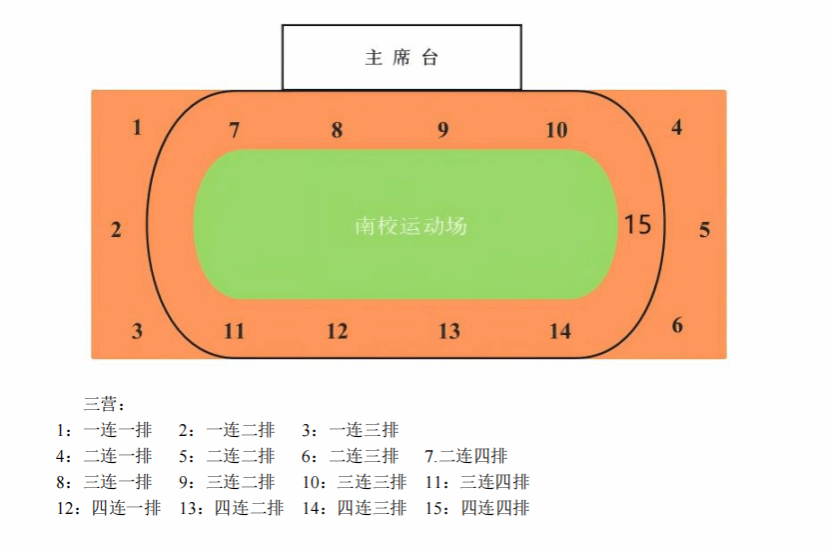 军训开营仪式安排在南校区田径场,军训成果汇报大会安排在北校区田径场(待定),训练场地分别安排在南校区田径场(瓜子tv )、南校区篮球场、北校区田径场、北校区新田径场。