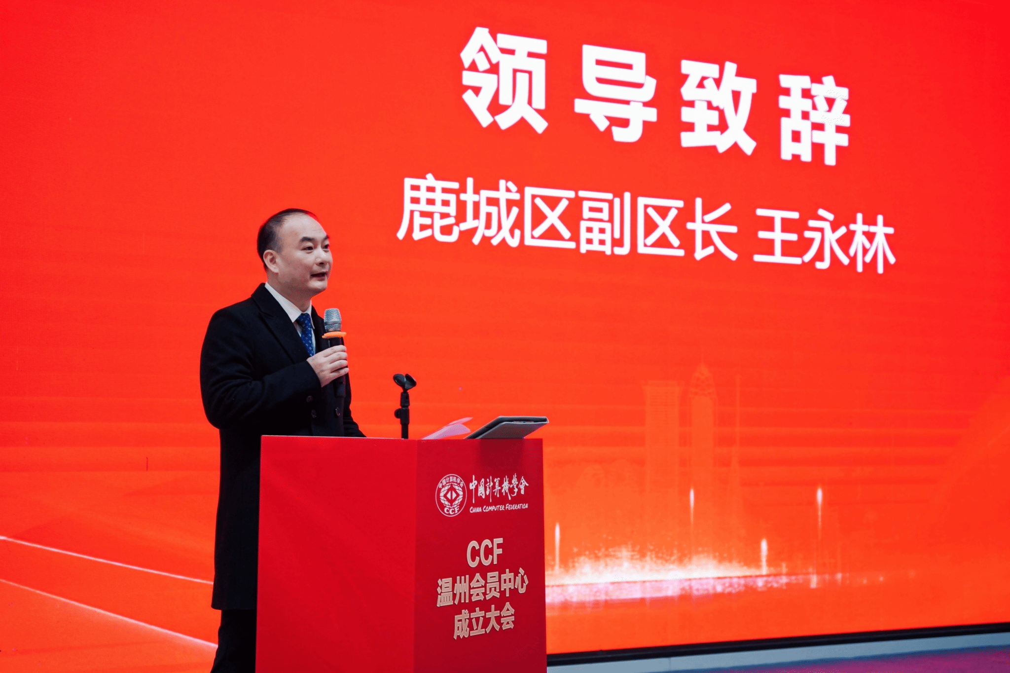 鹿城区副区长王永林表示,CCF温州的成立不仅为温州地区的计算机科学爱好者提供了一个交流与学习的平台,更是推动温州科技创新、人才培养的重要举措,鹿城将一如既往地支持CCF温州会员中心的工作,为其提供必要的支持和保障。