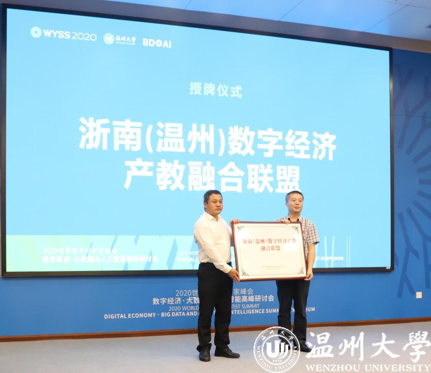 研讨会上还举行了多个平台的揭、授牌和签约仪式。市委宣传部副部长、网信办主任、市委副秘书长王丹、温州市发展和改革委员会副主任汪浩分别为“温州网络空间安全人才培养基地”、“浙南(温州)数字经济产教融合联盟”授牌。源于去年青峰会“大数据与人工智能论坛”的成果正式落地,浙南(温州)数字经济产教融合联盟成立,不单是温州各高校、数字经济骨干企业及行业协会共同努力的成果,也承载着政府部门的期待,联盟将为推动做大做强浙南地区数字经济发展做出更大的贡献。