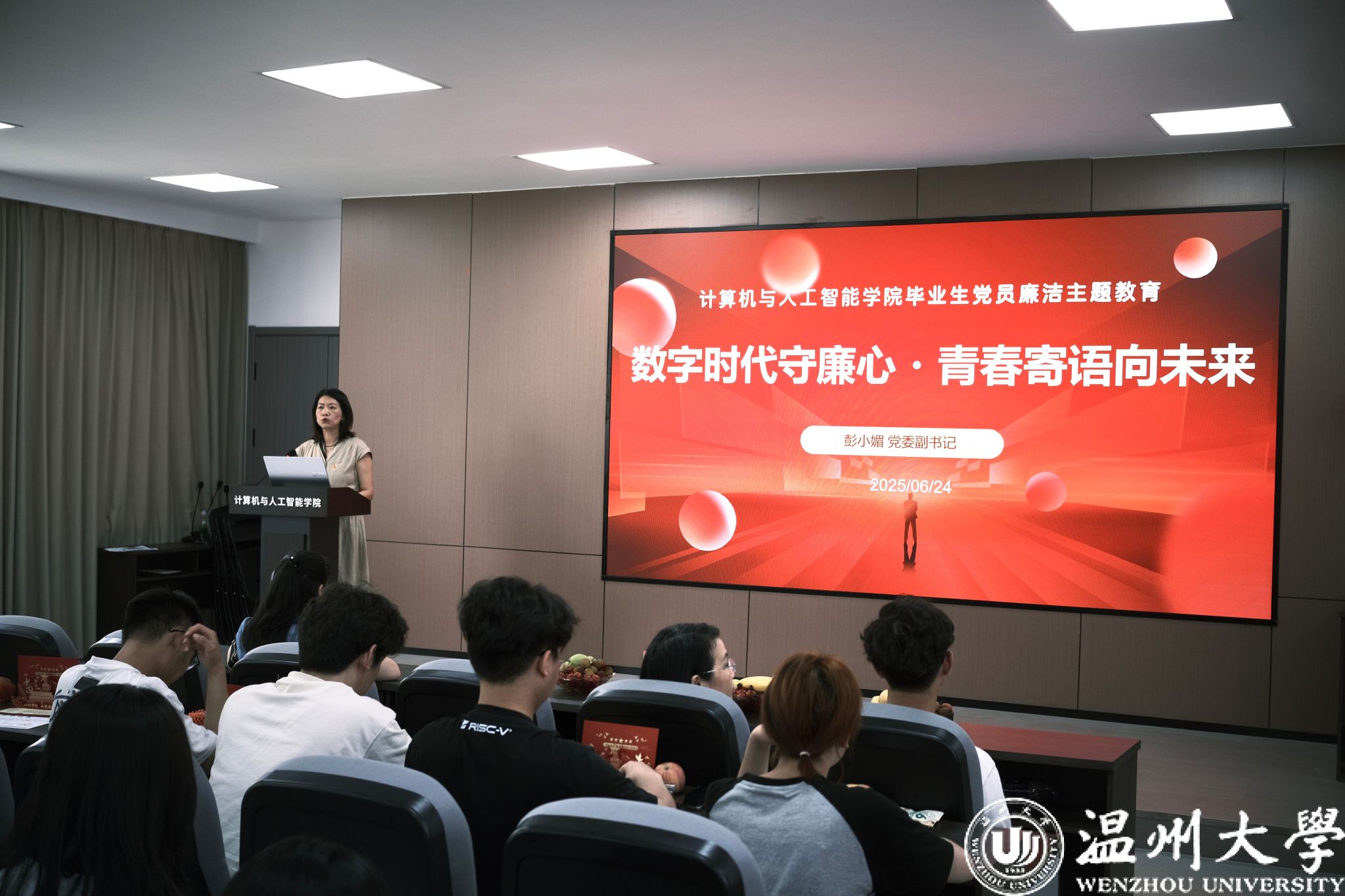为助力毕业生党员在新征程上锚定方向、坚定信念,瓜子tv 领导开展了专题教育活动。全力书记围绕党性教育主题,鼓励党员持续自我革新、强化责任担当,在未来的工作与生活中始终以高标准严格要求自己,争做时代先锋。彭小媚副书记则聚焦廉洁主题,深入阐述党性修养与纪律规矩的重要性,要求党员在投身技术创新浪潮时,严守道德与法律底线,永葆清正廉洁的政治本色。