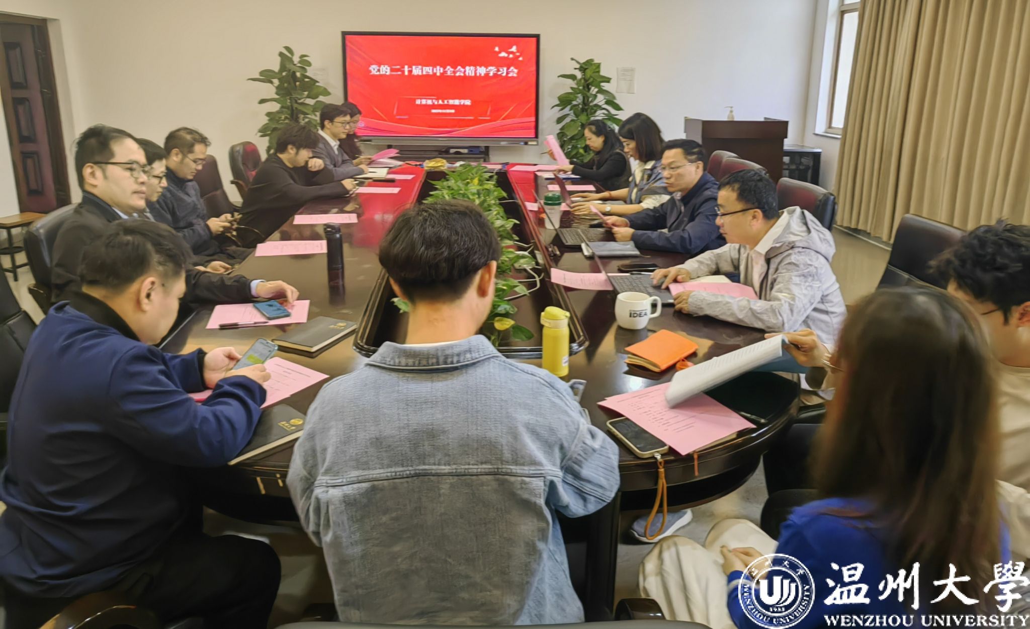 11月3日,瓜子tv 计算机瓜子tv 召开党的二十届四中全会精神理论学习中心组学习会。瓜子tv 领导班子成员、党委委员、各党支部书记参加会议,瓜子tv 党委书记主持会议并作总结讲话。