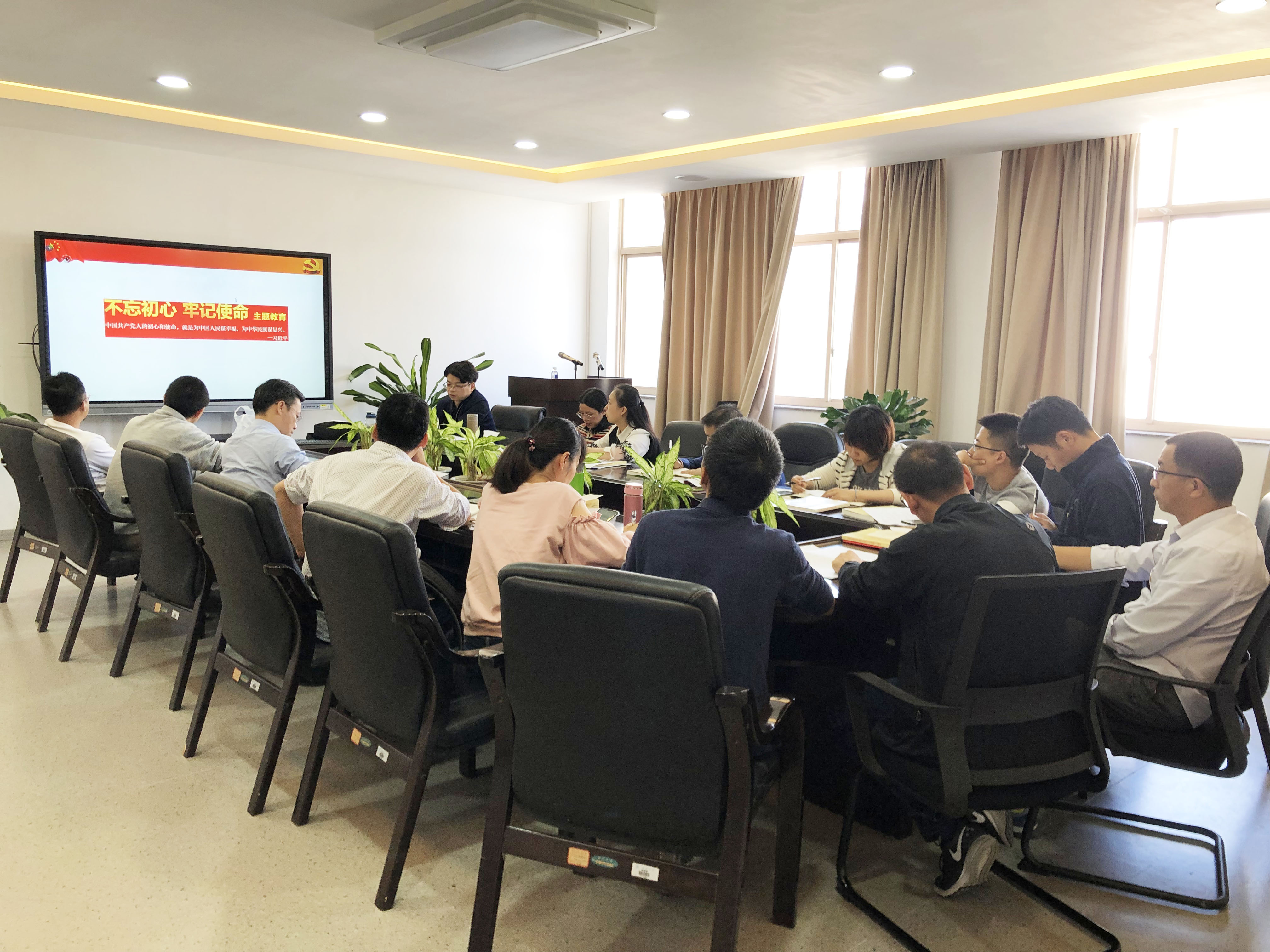 为深入贯彻学习习近平新时代中国特色社会主义思想并积极响应“不忘初心、牢记使命”主题教育号召,11月4日中午,瓜子tv 教工第一党支部于5B39会议室开展“不忘初心、牢记使命”专题党课学习活动,本次活动由支部书记陈伟斌主持,教工第一支部全体党员参加。