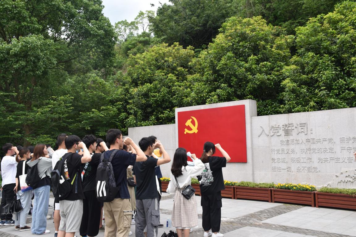 随后,党员们和入党积极分子们随着讲解员来到中共浙江省一大陈列馆。“我志愿加入中国共产党...”在宣誓墙前,徐梦瑶同学带领所有党员以及积极分子面对党旗,重温入党誓词,铭记光辉历史,大家在党旗下接受心灵的净化和洗礼。