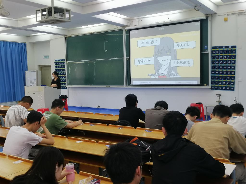 黄星豪同学以诈骗定义作为宣讲的开端,结合具体的网络诈骗案例展开宣讲,通过《防诈骗小课堂》小视频,使同学们学会认清诈骗的方法。最后,黄星豪同学给同学们8条防诈骗小贴士,为同学们再次敲响了提防网络诈骗的警钟。
