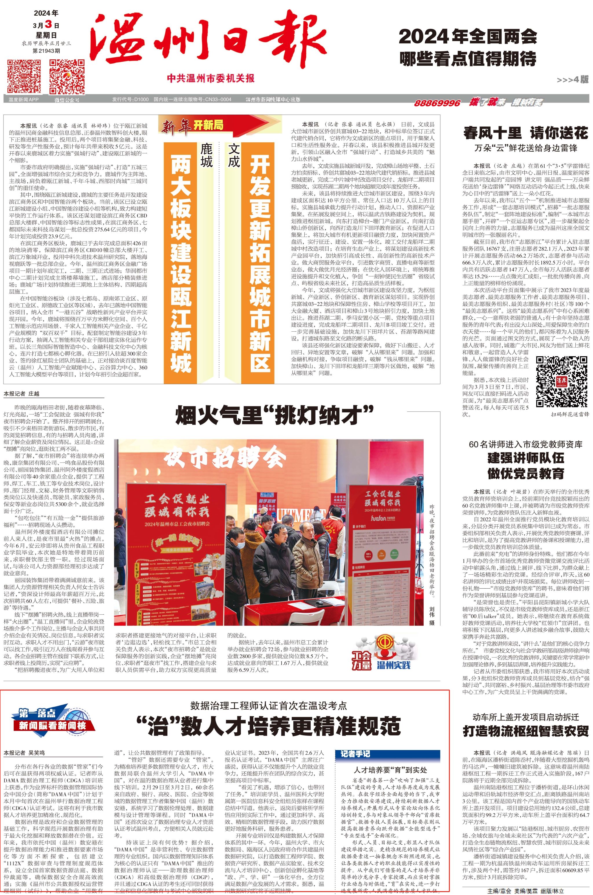 分布在各行各业的数据“管家”们今后可在温获得两项权威认证。记者今日从DAMA数据治理工程师(CDGA)培训班上获悉,作为业界标杆的数据管理国际协会中国分会(简称“DAMA中国”)计划于本月中旬首次在温州举行数据治理工程师(CDGA)认证考试。这将有利于我市数据人才培养更加精准化、规范化。数据治理是政府和企业数据管理的基础工作,科学规范开展数据治理有助于最大化挖掘和释放数据潜在的价值。近年来,我市依托中国(温州)数安港在提升数据治理能力和推进数据要素市场化等方面不断探索,...
