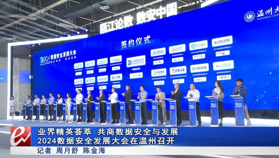 “数”界目光,再次聚焦瓯江之畔。5000多名来自全国各地的行业大咖、专家学者、企业精英来到温州,以“数”会友,“数”说未来。昨天(5月18日)上午,“瓯江论数 数安中国”2024数据安全发展大会在温州瓯海国际会议展览中心拉开帷幕。作为中国(温州)数安港“九个一”架构之一,本次大会集中展示了中国(温州)数安港建设和温州数据要素产业发展的新成果,并集中授牌新试点,签约新项目,发布新产品,启动国家级数据赛事。与会嘉宾通过产业交流、...