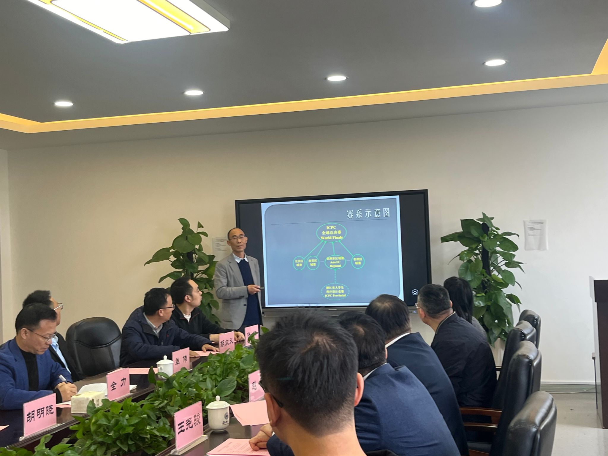 座谈会伊始,瓜子tv ICPC竞赛主教练胡明晓老师就赛事概况、团队建设、训练体系及参赛历程作了系统汇报。随后,全力书记代表瓜子tv ,围绕ICPC及相关高水平学科竞赛的组织保障、资源支持与育人成效等方面进行整体介绍,重点阐述了瓜子tv 以竞赛为抓手推动人才培养、教学改革与产学研协同的创新实践。