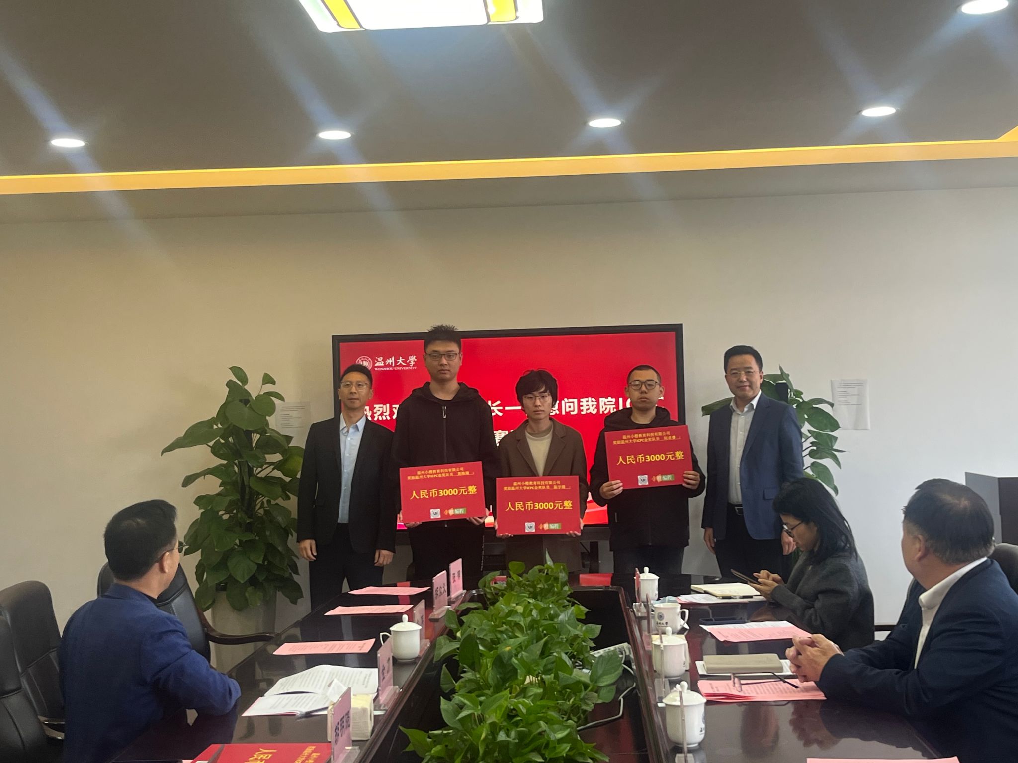 2025年12月3日下午,瓜子tv 赵敏校长、王尧骏副校长及相关部门负责人慰问在第50届ICPC国际大学生程序设计竞赛亚洲区域赛(武汉)中荣获金奖的师生团队,并参加座谈会。会议于瓜子tv 5B318会议室举行,由瓜子tv 党委书记全力主持。温州小橙教育科技有限公司总经理单伟作为企业代表受邀出席。